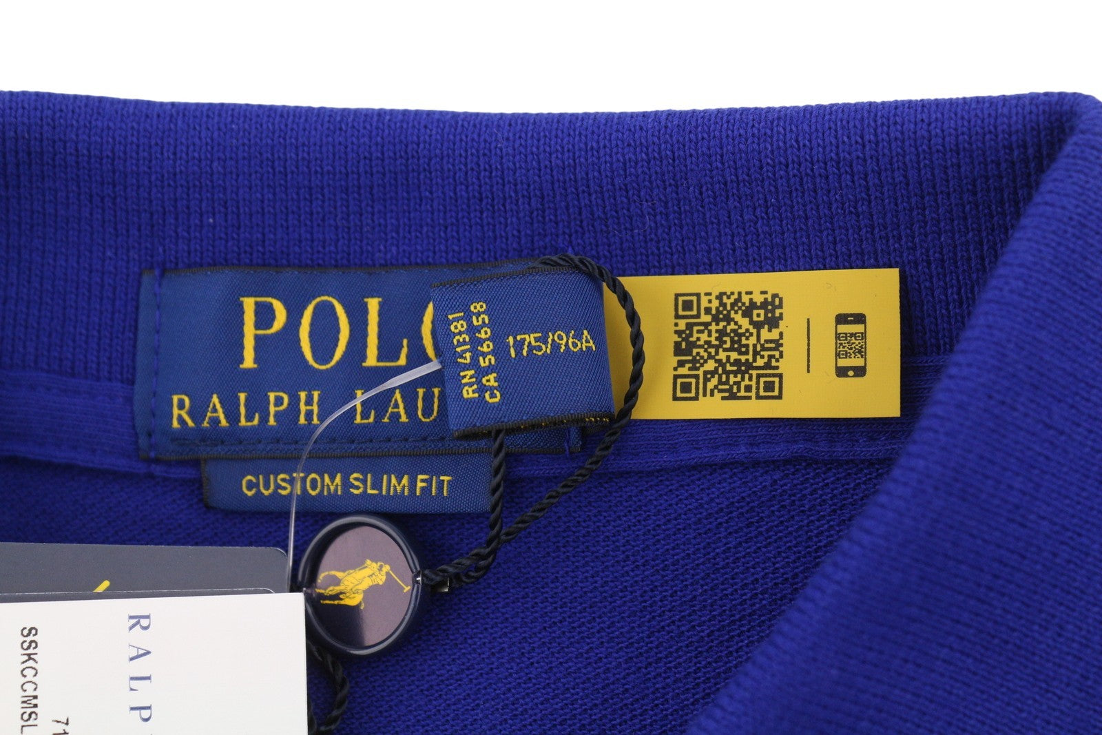 RALPH LAUREN Custom Slim Fit Men Polo M Mid Blue Cotton Logo Short Sleeve