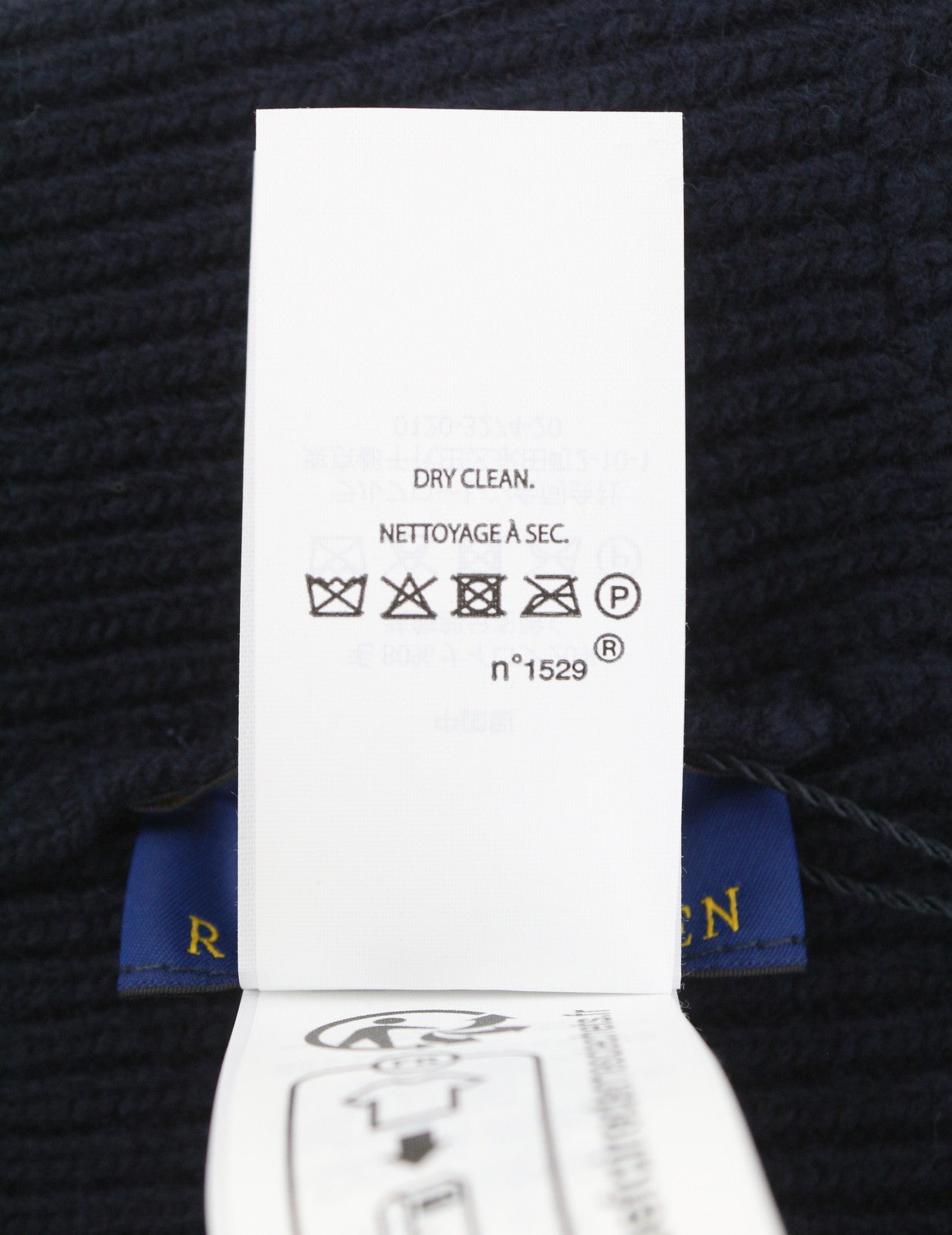 RALPH LAUREN Signature Cuff Men Hat 52 CM Dark Blue Wool Blend Knitted Beanie