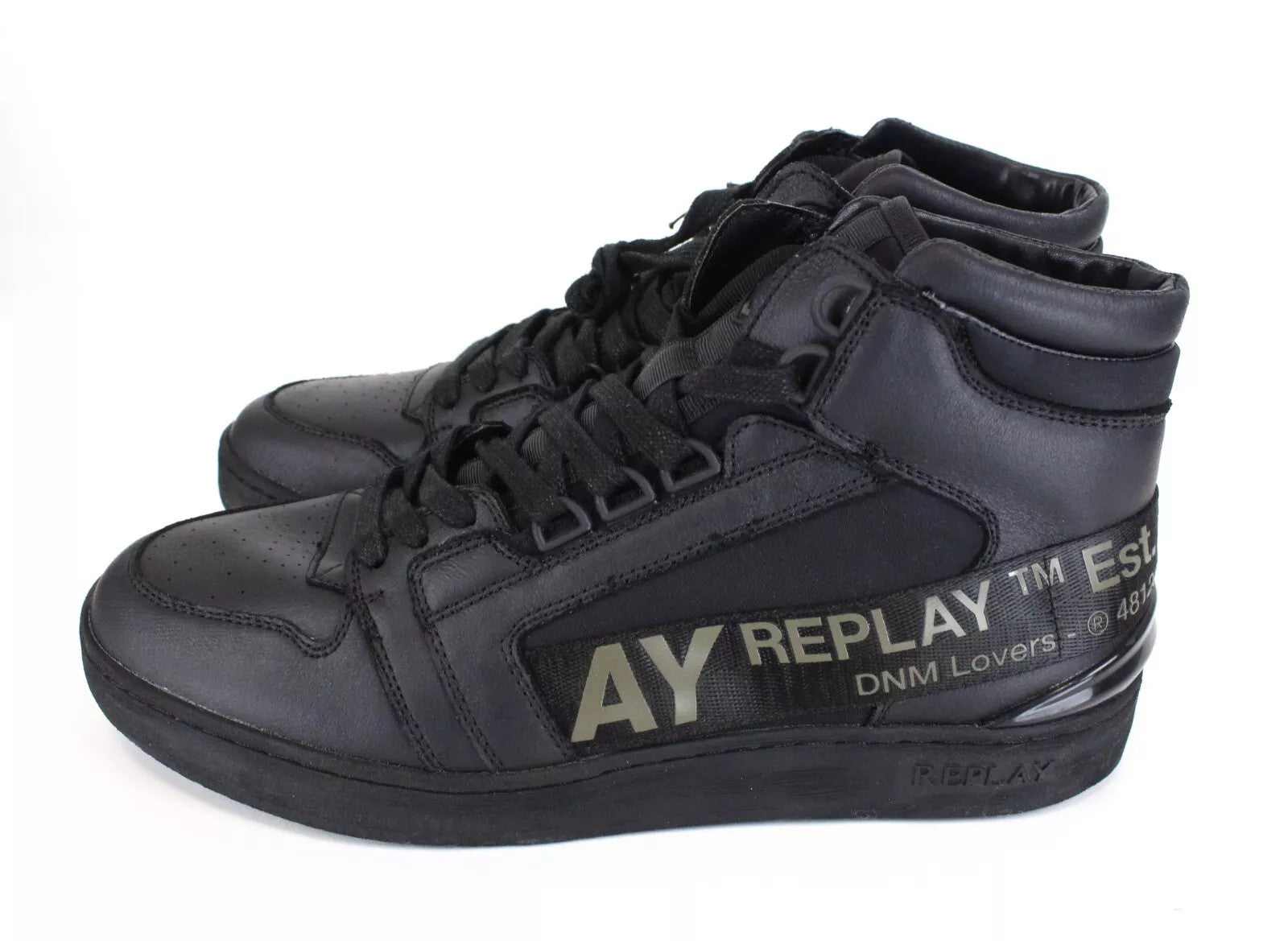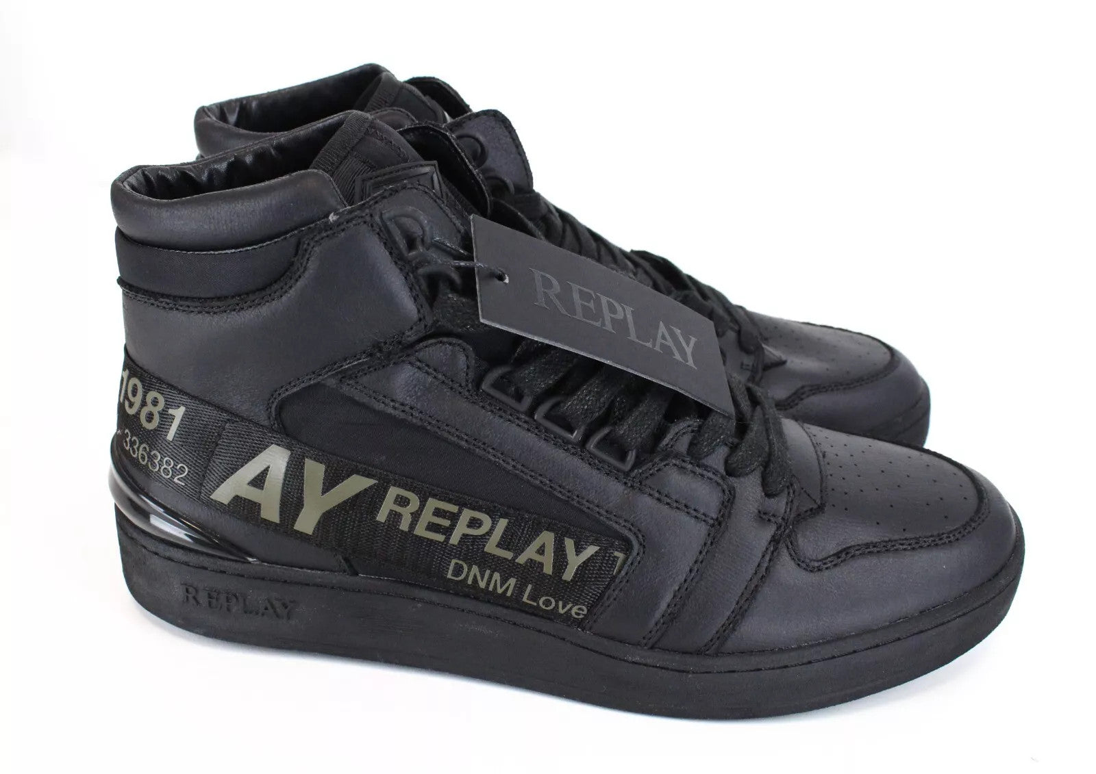REPLAY Alliot juodi aukštakulniai EU46 logotipo vyriški laisvalaikio sportbačiai su nėriniuotais raštais