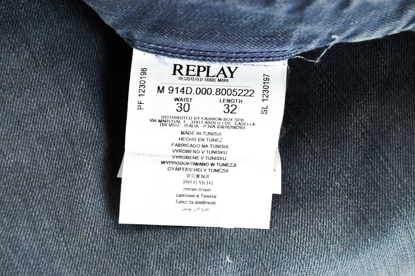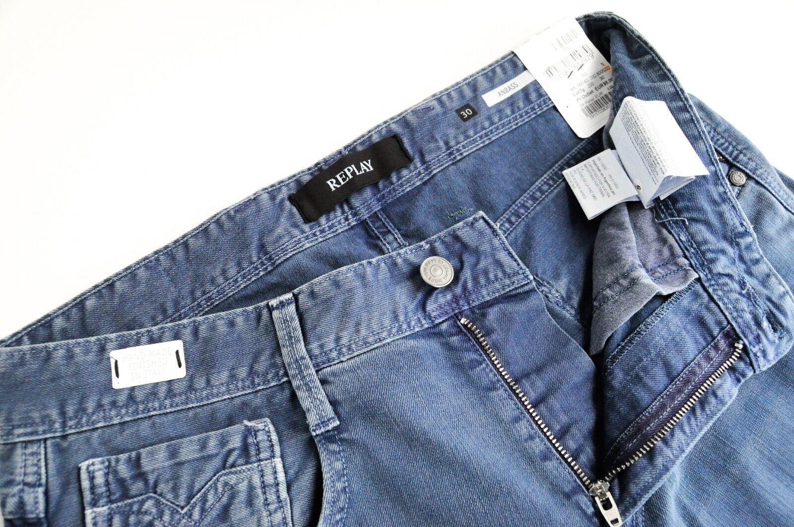 REPLAY Anbass vyriški džinsai W30/L32 Slim Fit mėlyni su 5 kišenėmis, tamprūs, laisvalaikio stiliaus