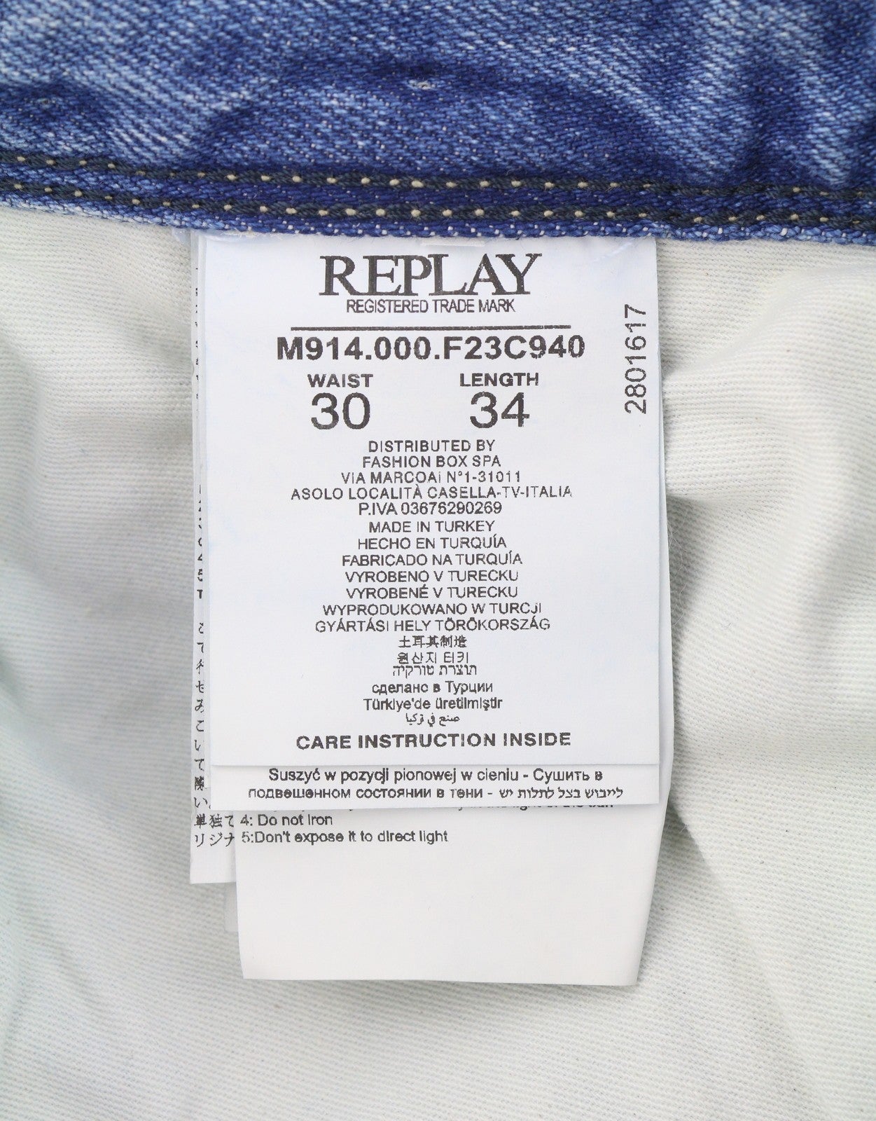 REPLAY Anbass Men Jeans W30/L34 Blue Whiskers Faded Slim Fit Zip Fly Denim