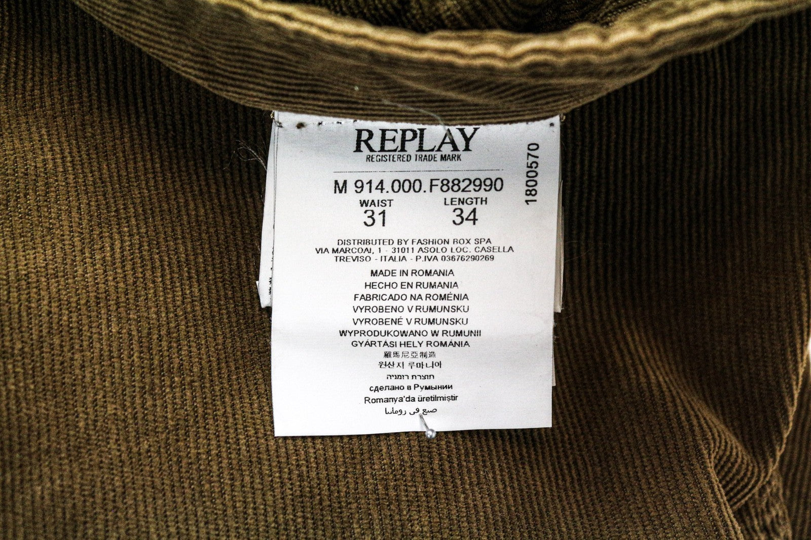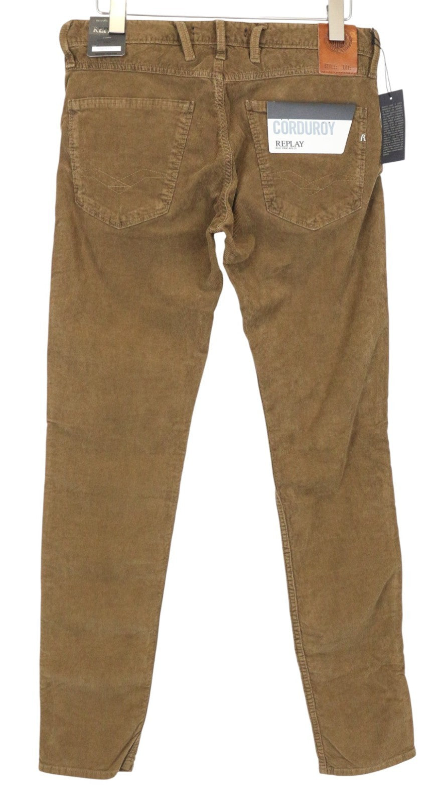 REPLAY Anbass vyriškos velveto kelnės W31/L34 rudos, plonos, tamprios medvilninės kelnės