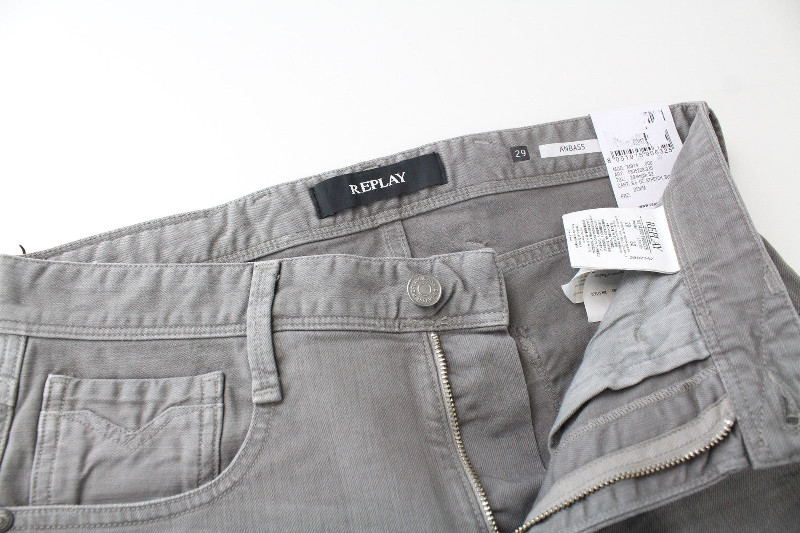 REPLAY Anbass vyriški džinsai W29/L32 Slim pilki medvilniniai džinsai su 5 kišenėmis, tamprūs, laisvalaikio kirpimas
