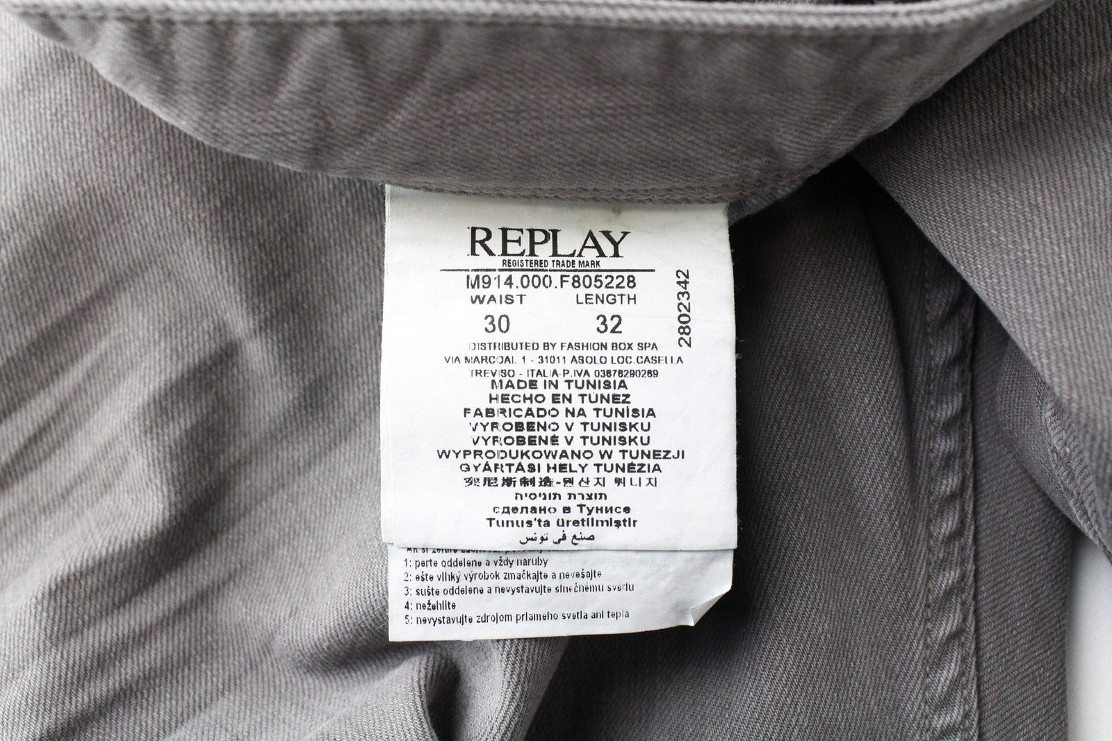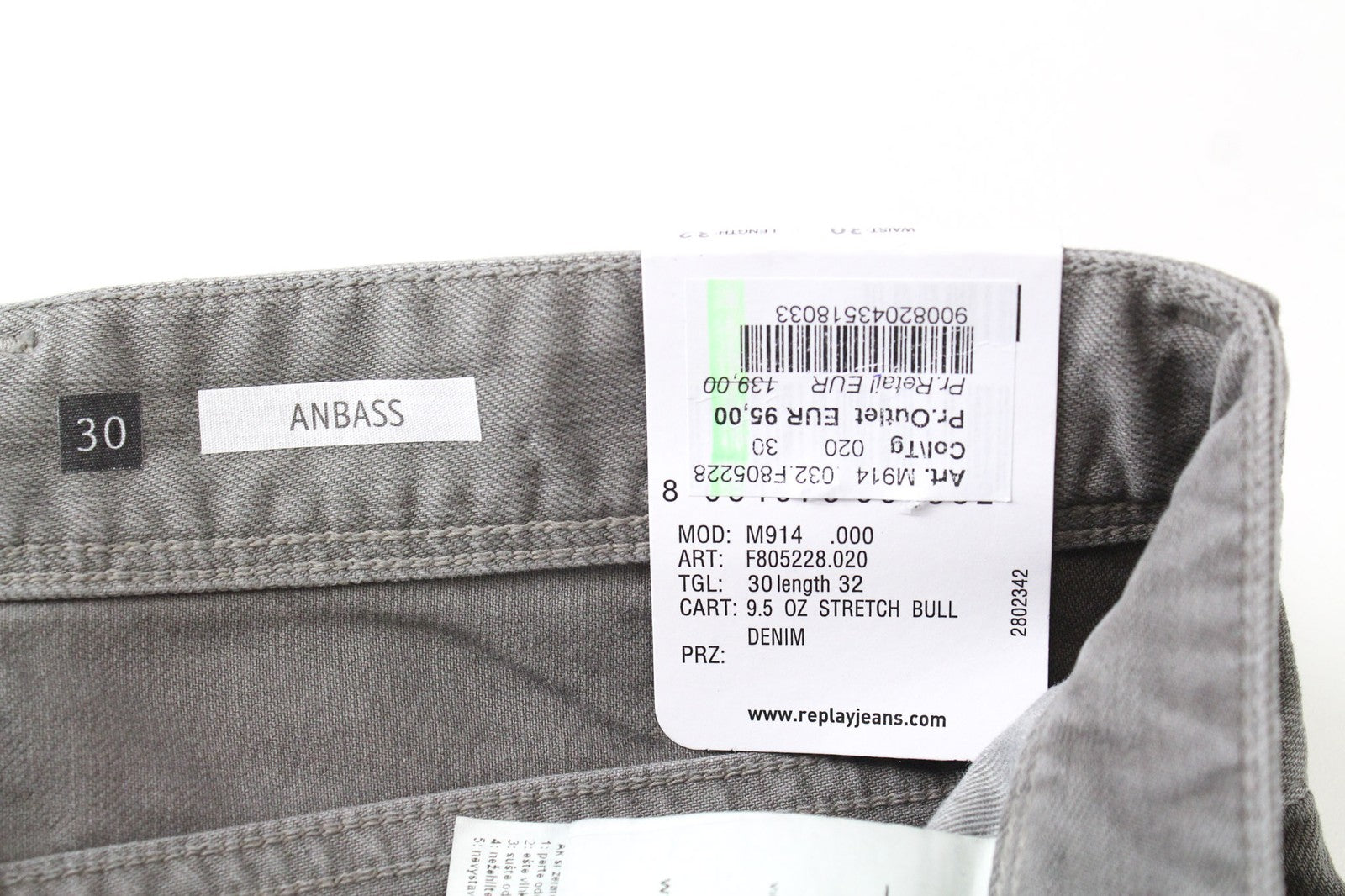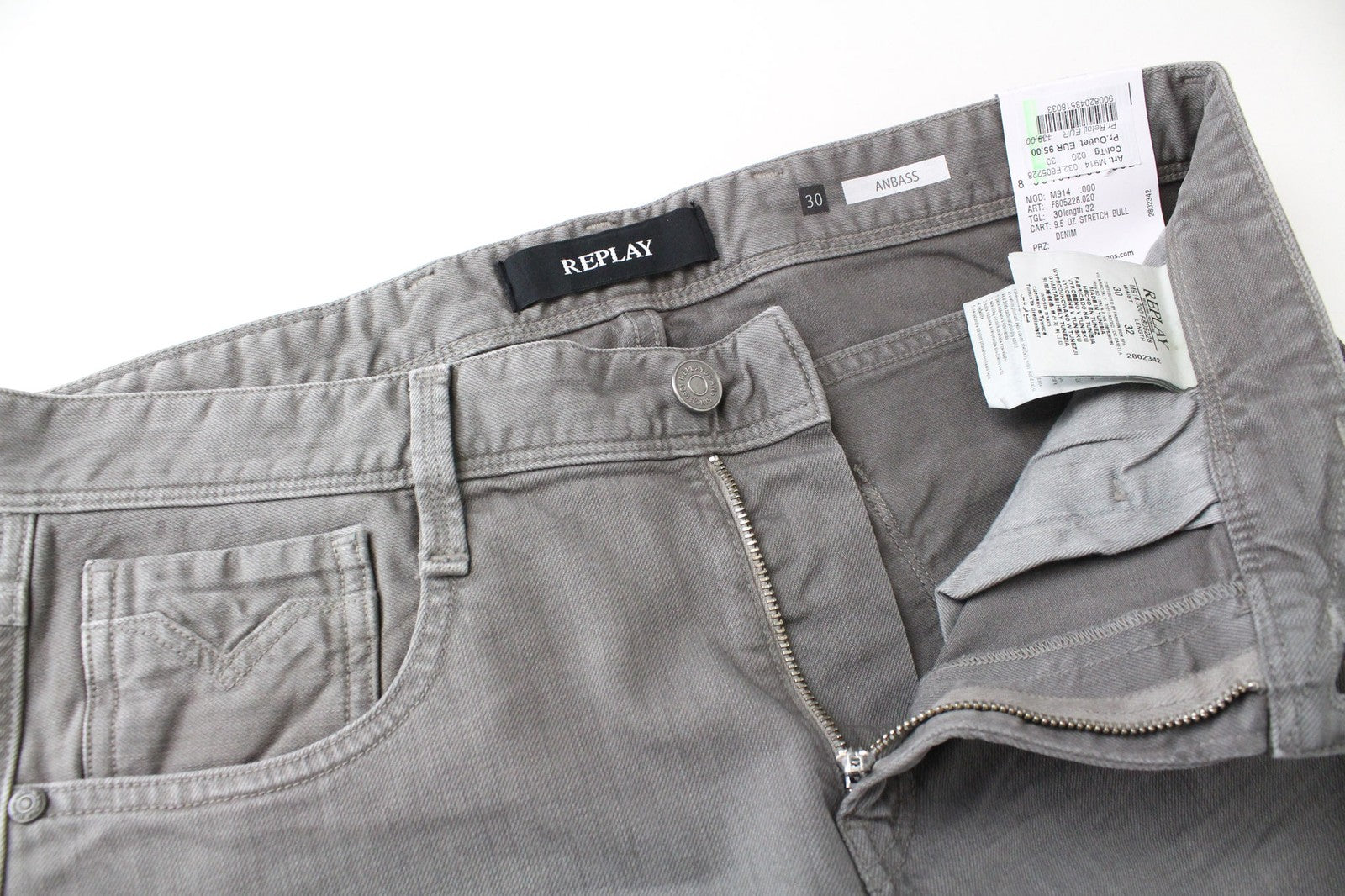 REPLAY Anbass vyriški džinsai W30/L32 vidutinio pilkumo, ploni, klasikinio tamprumo, pilko audinio