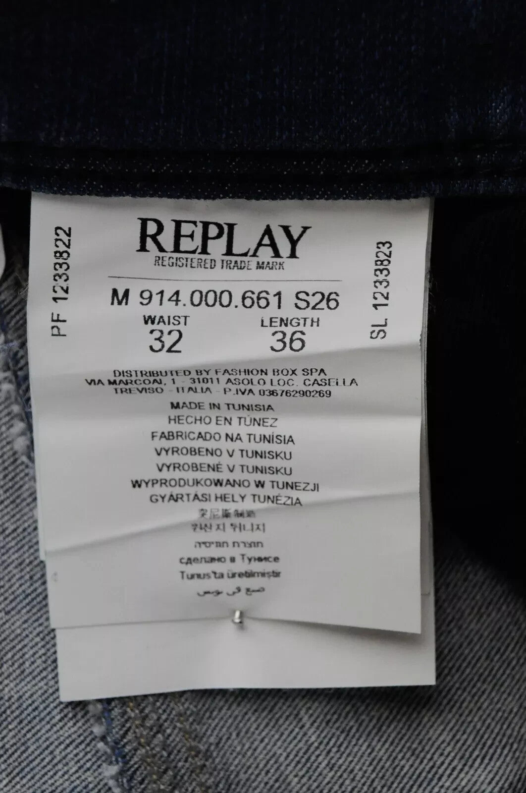 REPLAY Anbass vyriški džinsai W32/L36 Slim Fit, skalbtos mėlynos spalvos, 5 kišenės