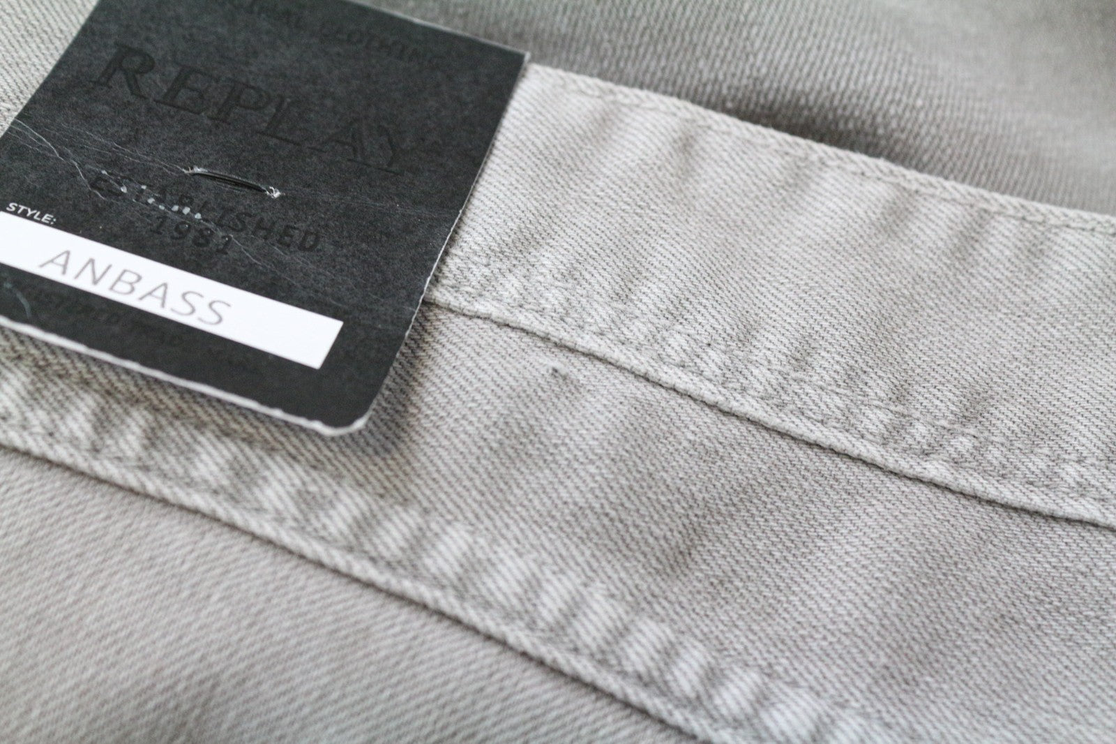 REPLAY Anbass Men's Jeans W38 L32 Grey Slim Stretch Washed Denim Casual Fit