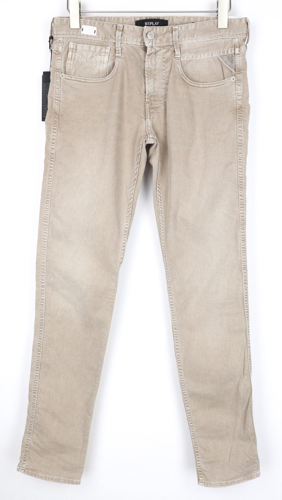 REPLAY Anbass vyriškos W30/L32 šviesiai rudos, plonos, tamprios džinsinės kelnės su užtrauktuku
