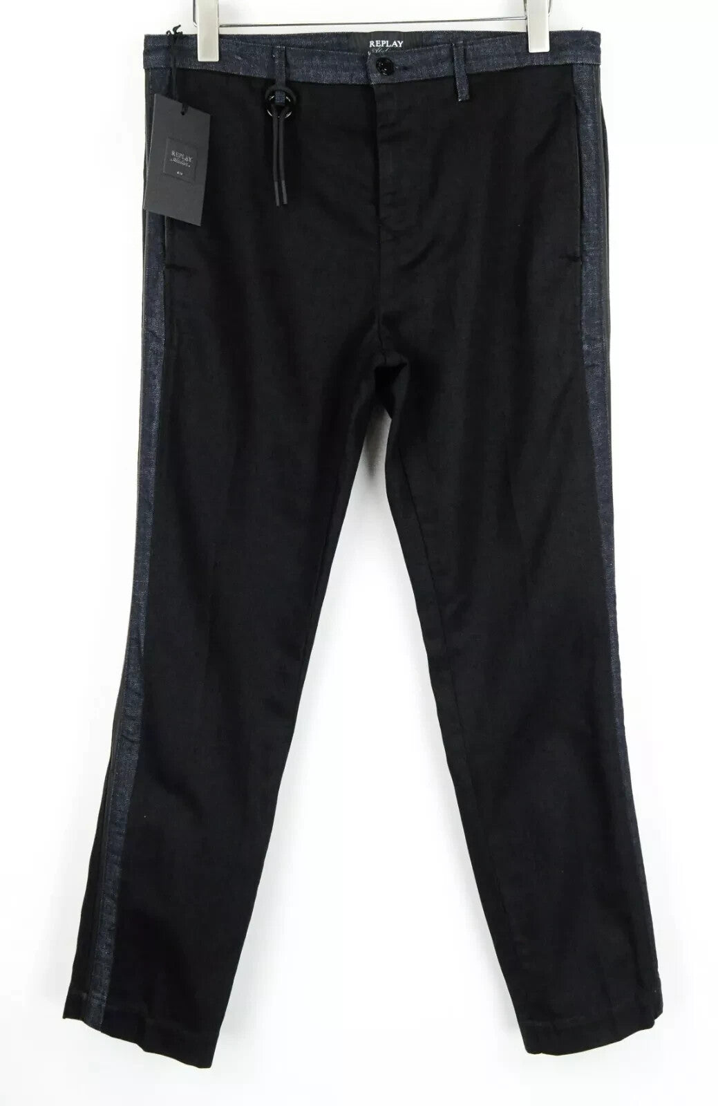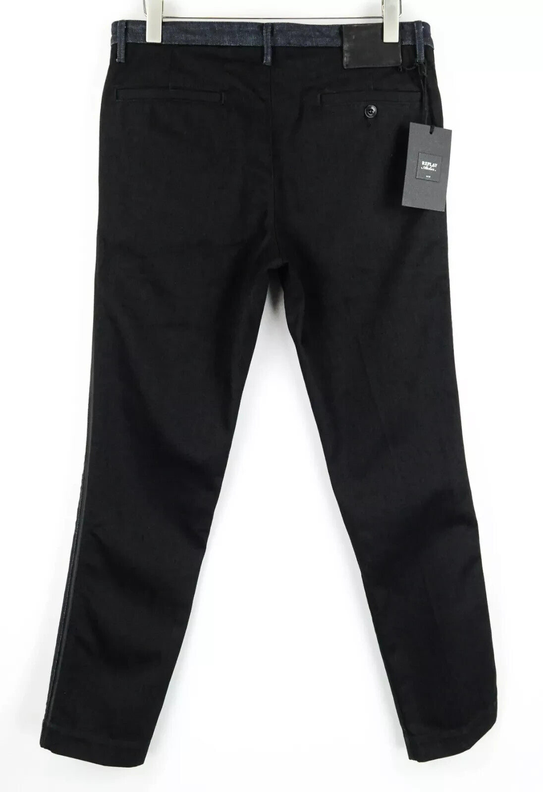 REPLAY Atelier Slim W34 L30 vyriški džinsai su užtrauktuku ir kišenėmis, juodos ir mėlynos medvilninės kelnės