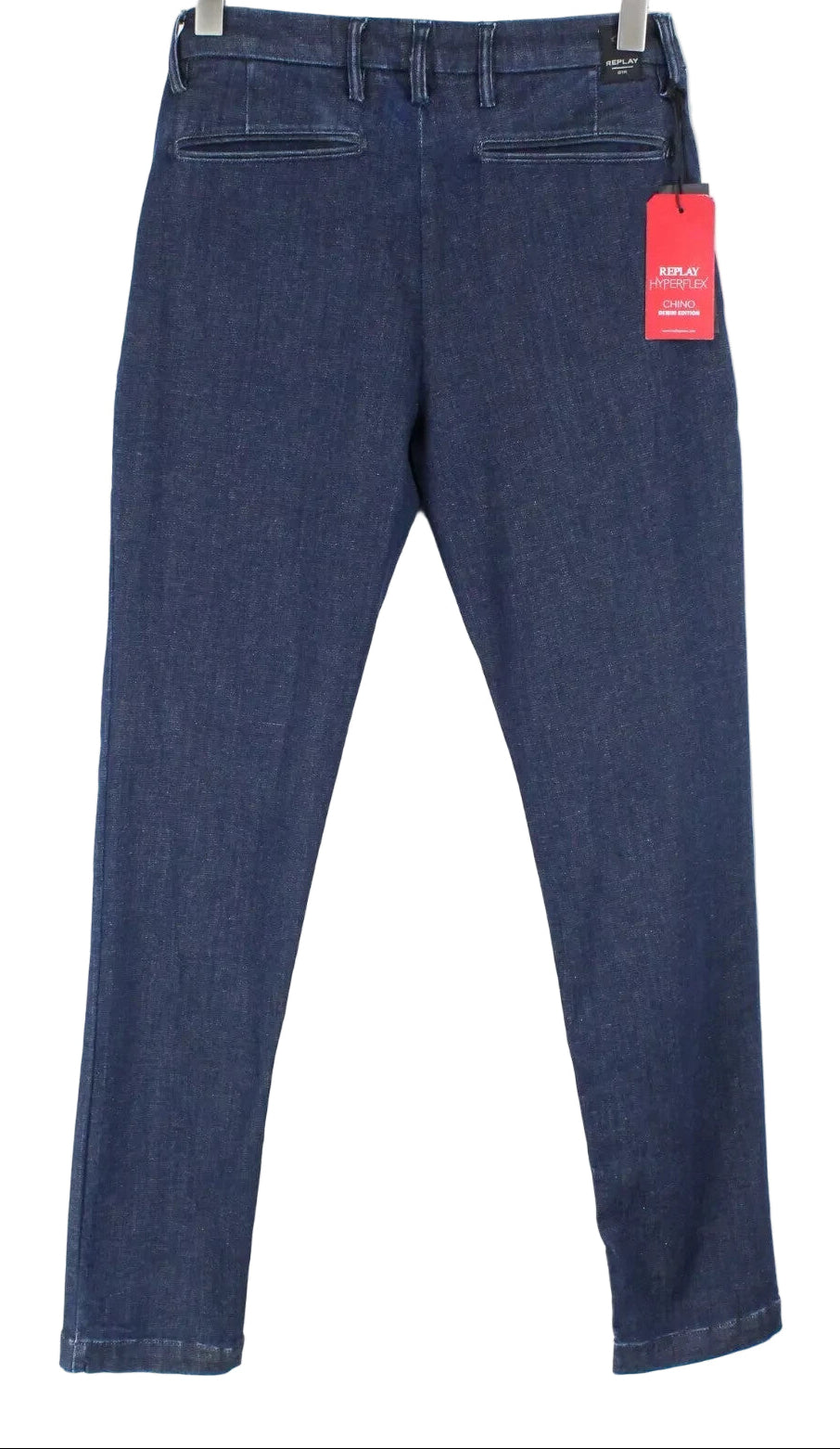 REPLAY Benni vyriški W30 L32 Chino Hyperflex mėlyni džinsai su tampriu gobtuvu