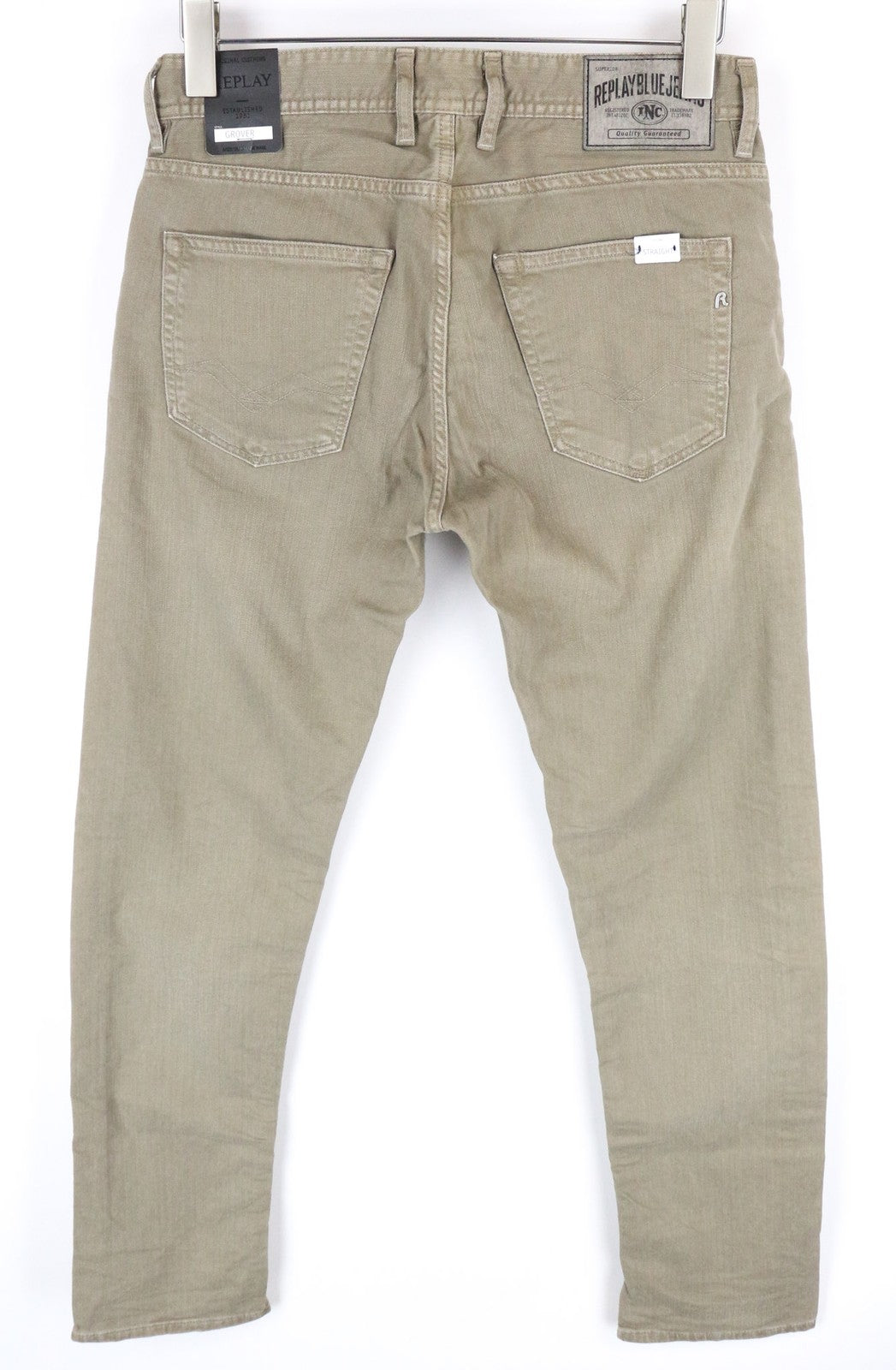 REPLAY Grover vyriški smėlio spalvos rudi tiesaus kirpimo medvilniniai tamprūs džinsai W30/L32