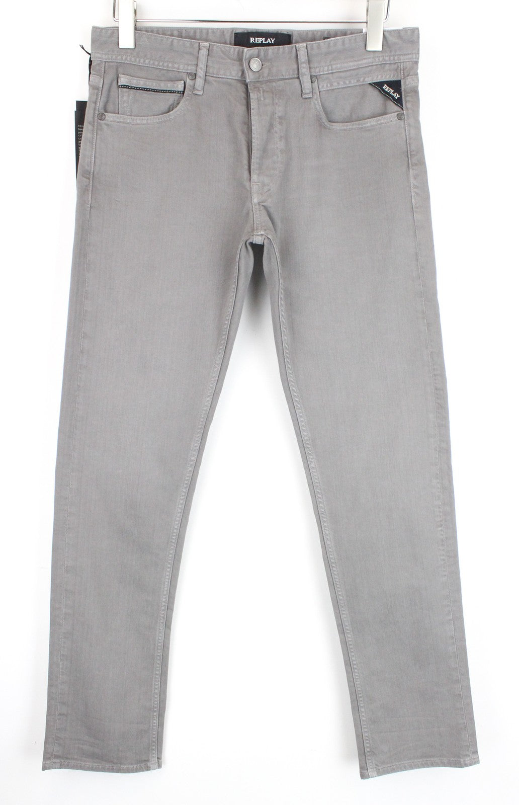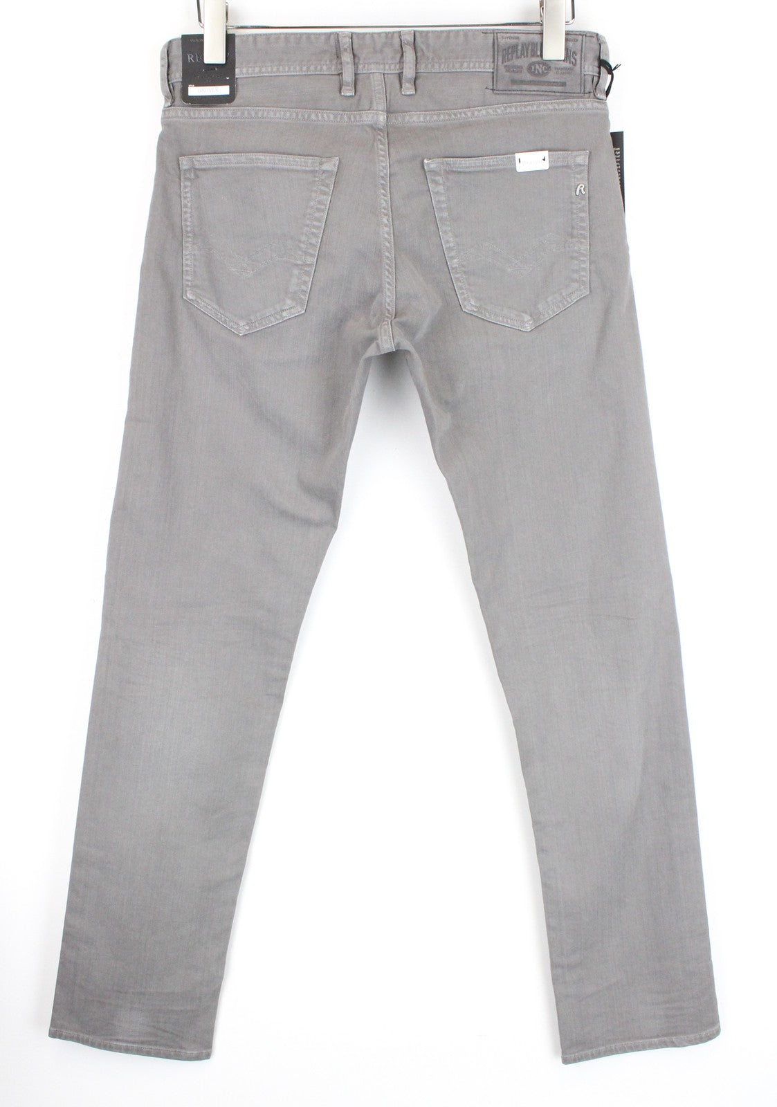 REPLAY Grover vyriški džinsai W30/L32 tiesaus kirpimo pilki tamprūs džinsai su sagomis