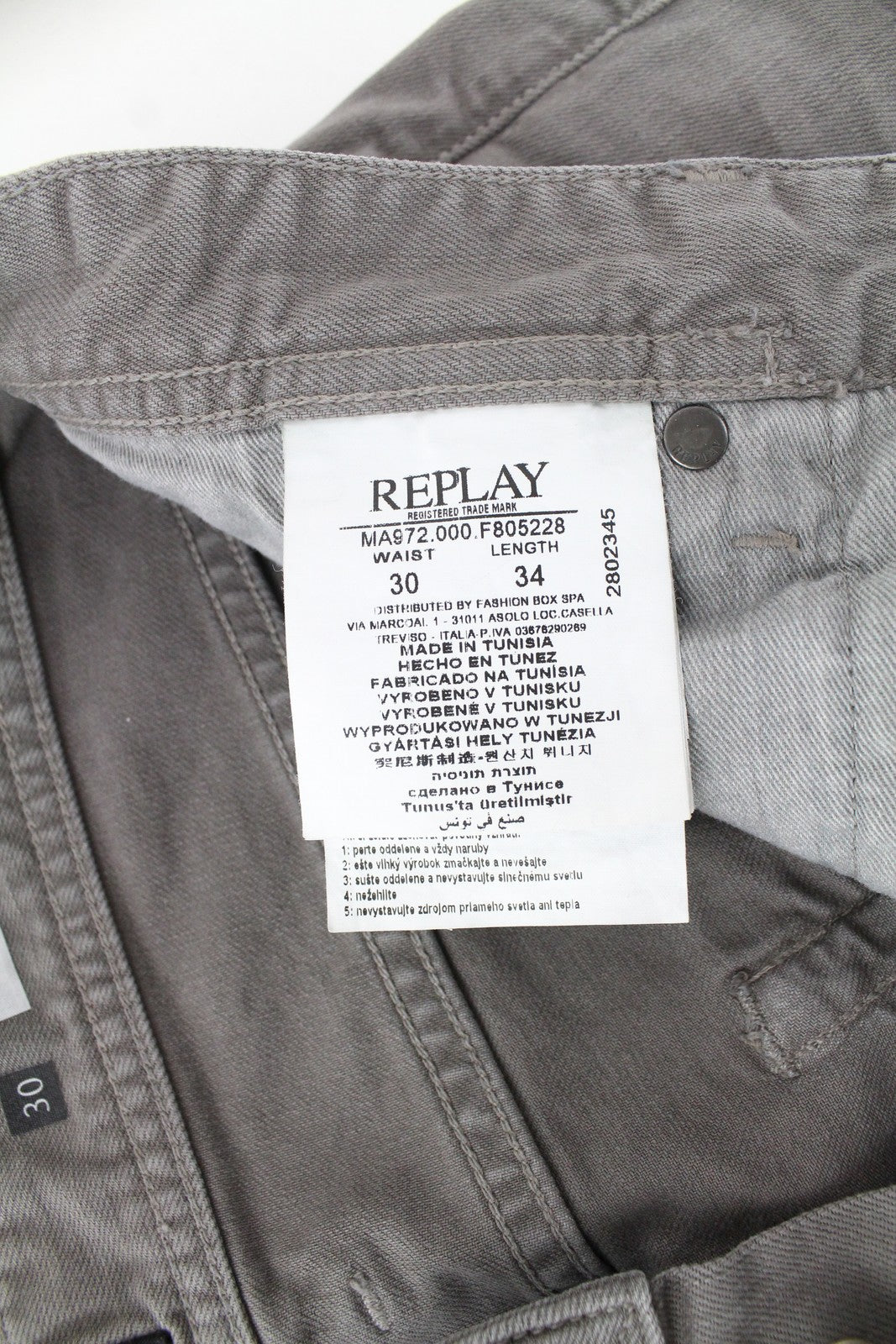 REPLAY Grover vyriški tiesaus kirpimo džinsai W30/L34 pilki raštuoti sagų užsegimo džinsai