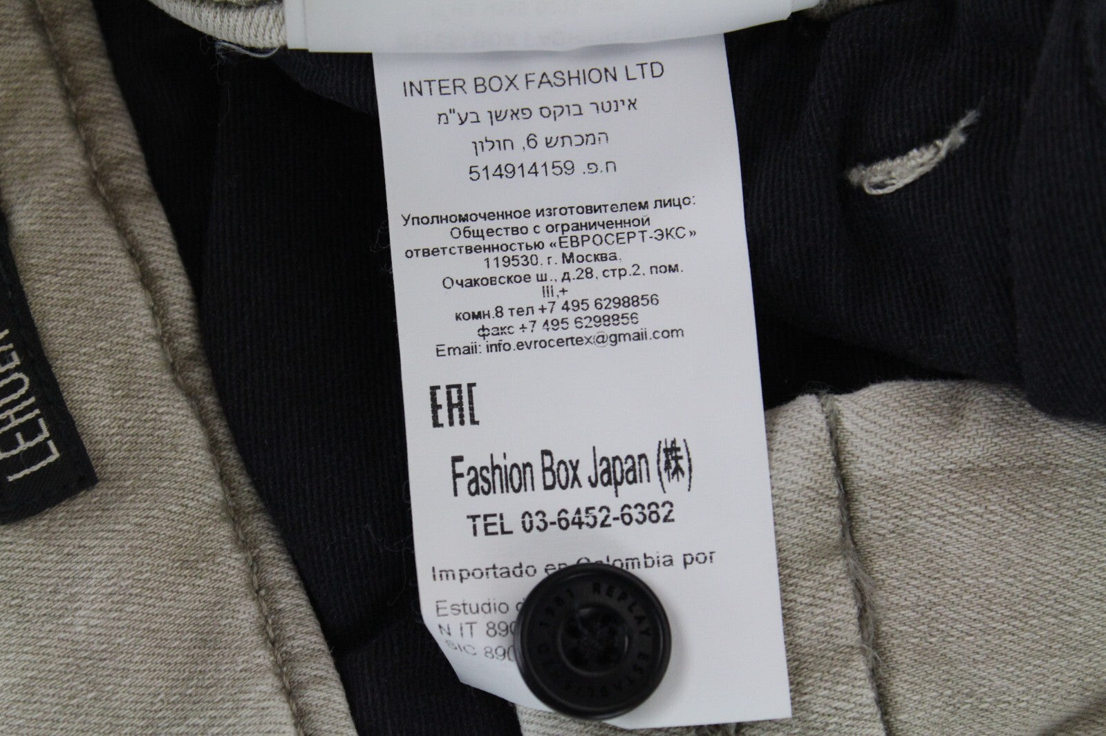 REPLAY Lehoen Men Chinos W27 Beige Cotton Hyperflex Washed Stretch Trousers