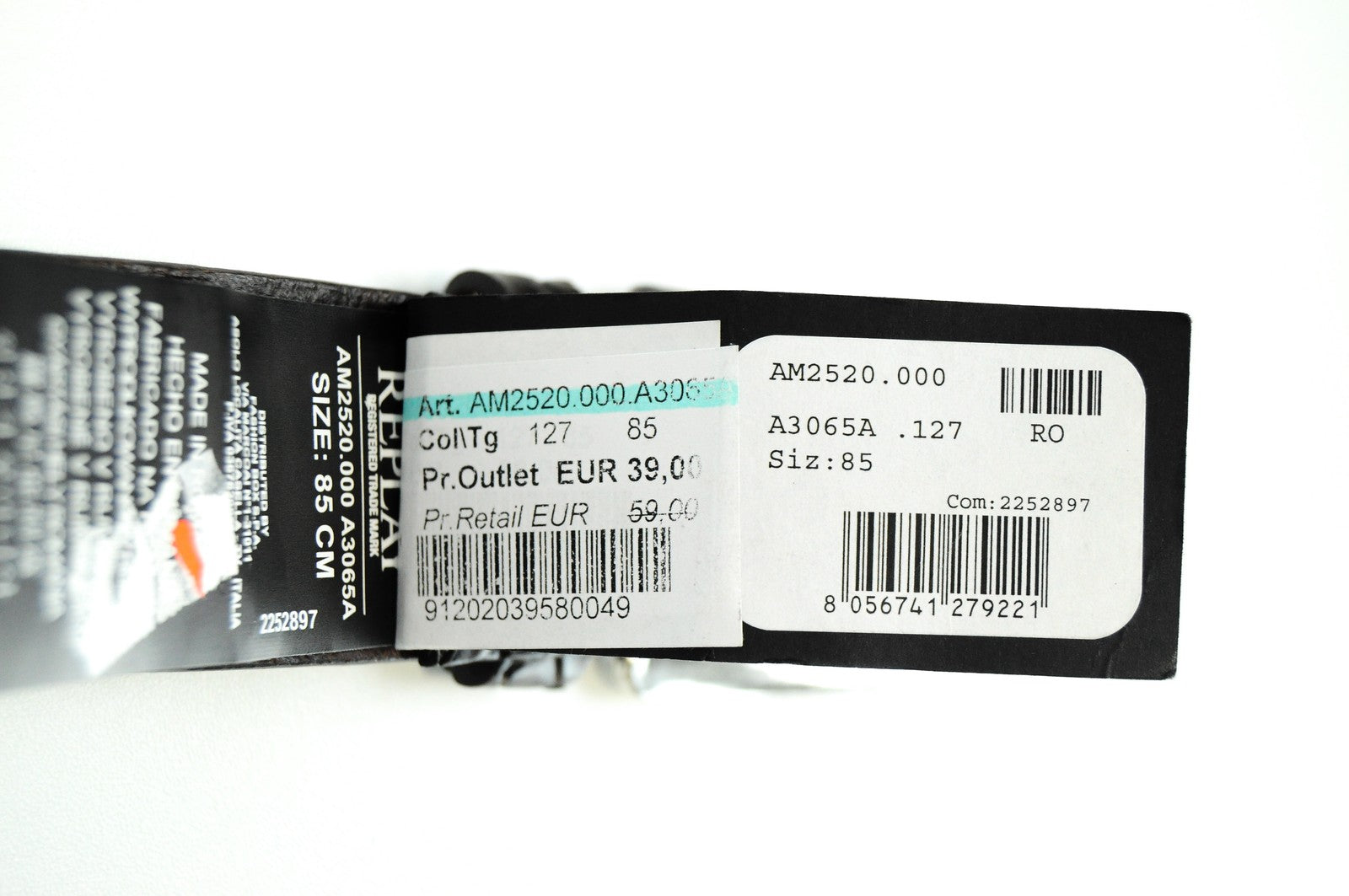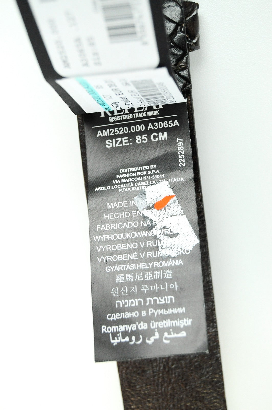 REPLAY vyriškas diržas 85 cm rudas odinis diržas su logotipu ir kvadratiniais galais