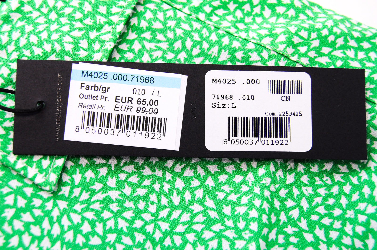 REPLAY vyriški žali marškinėliai L raštuoti iškirpte, apykakle, grynos medvilnės ilgomis rankovėmis