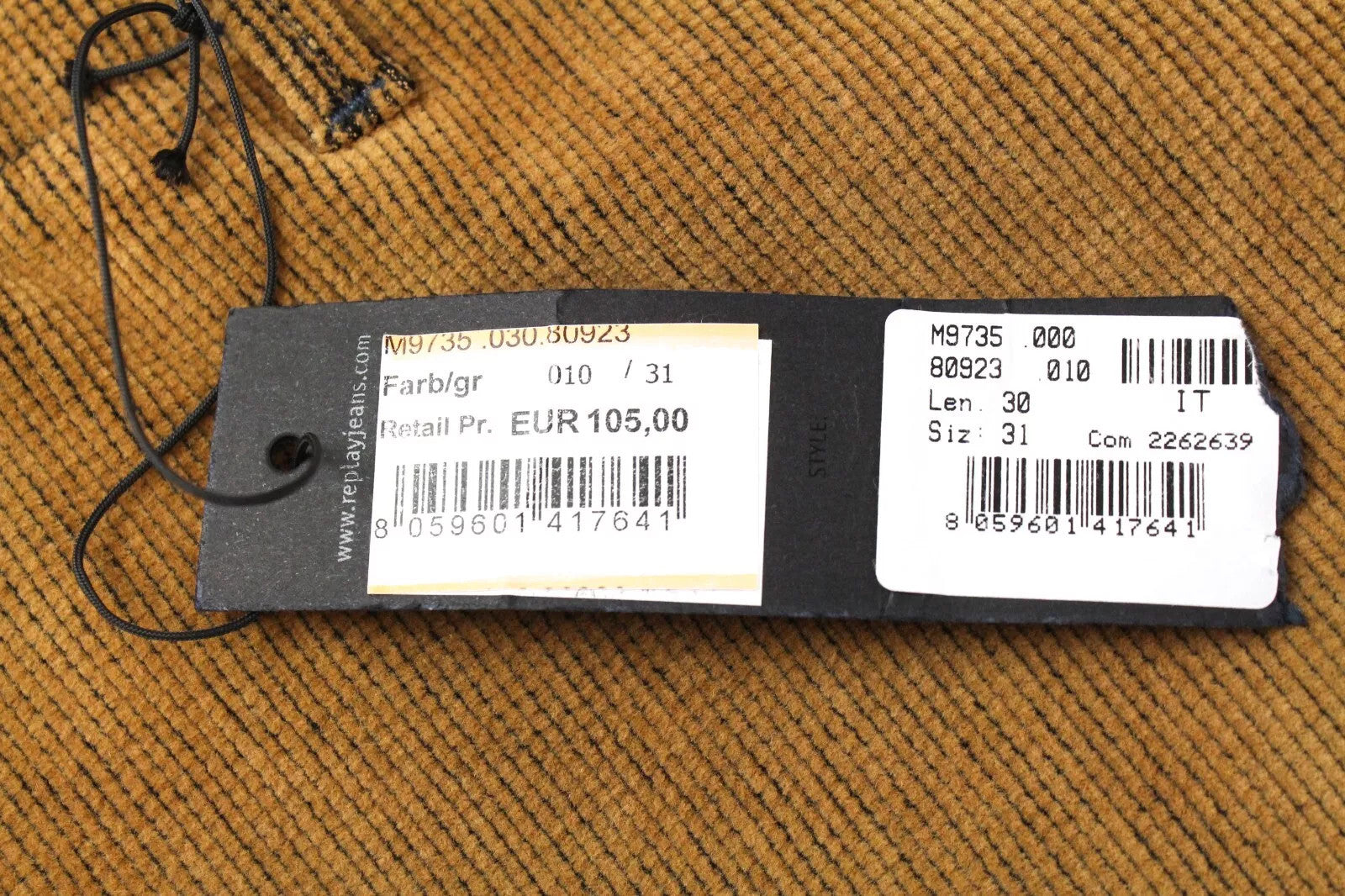 REPLAY Men`s Trousers W31/L30 Patched Corduroy Brown Button-Fly Straight Fit