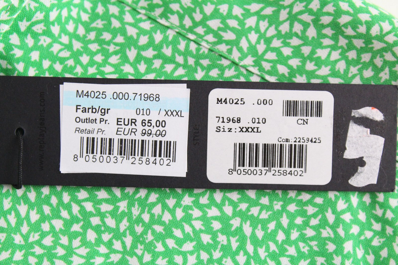 REPLAY vyriški žali 3XL medvilniniai marškinėliai su baltu raštu, ilgomis rankovėmis, su sagomis