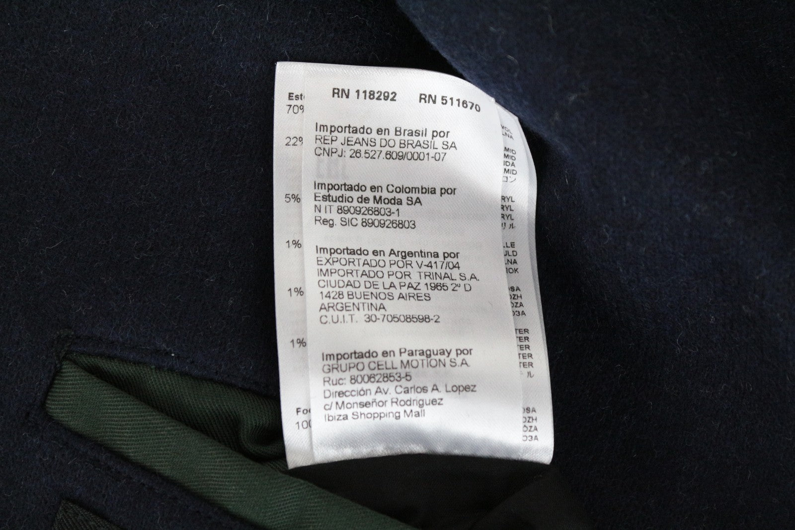 REPLAY vyriškas paltas 48 mėlynas vilnos mišinio dvieilis su smailia apykakle, rekomenduojama mažmeninė kaina – 499 €