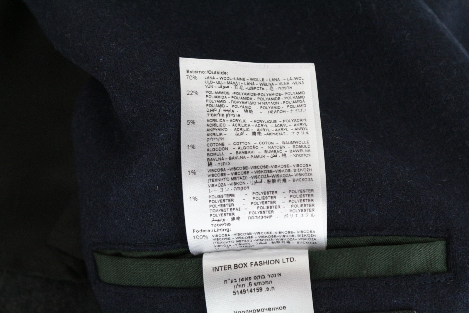 REPLAY vyriškas paltas 50 mėlynas vilnos mišinio dvieilis su smailia apykakle, rekomenduojama mažmeninė kaina – 499 €