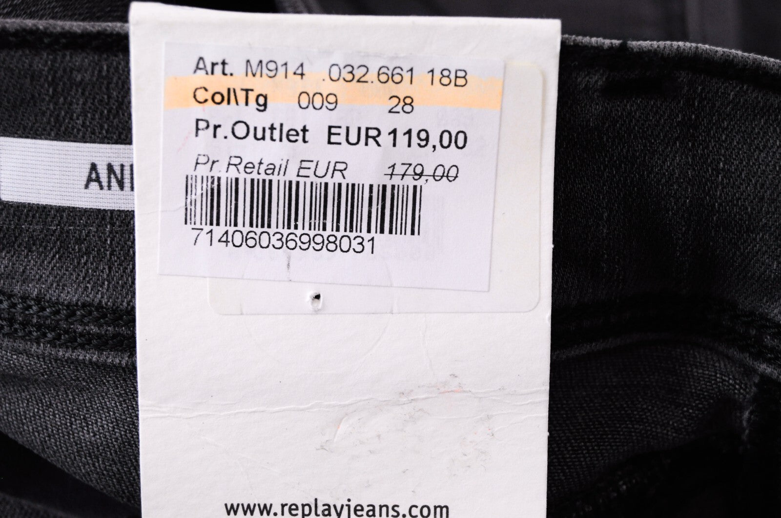 REPLAY vyriški džinsai W28/L32 Anbass Grey Hyperflex Slim su dirbtiniais defektais ir užtrauktuku