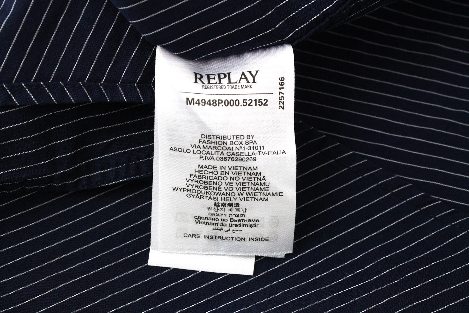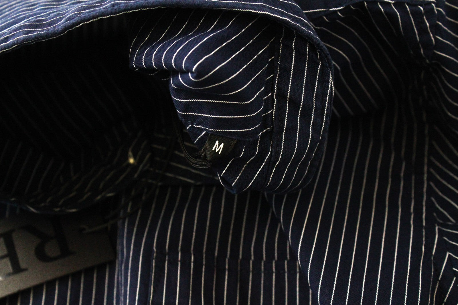 REPLAY vyriški marškinėliai M tamsiai mėlyni dryžuoti dryžuoti grynos medvilnės ilgomis rankovėmis su sagomis