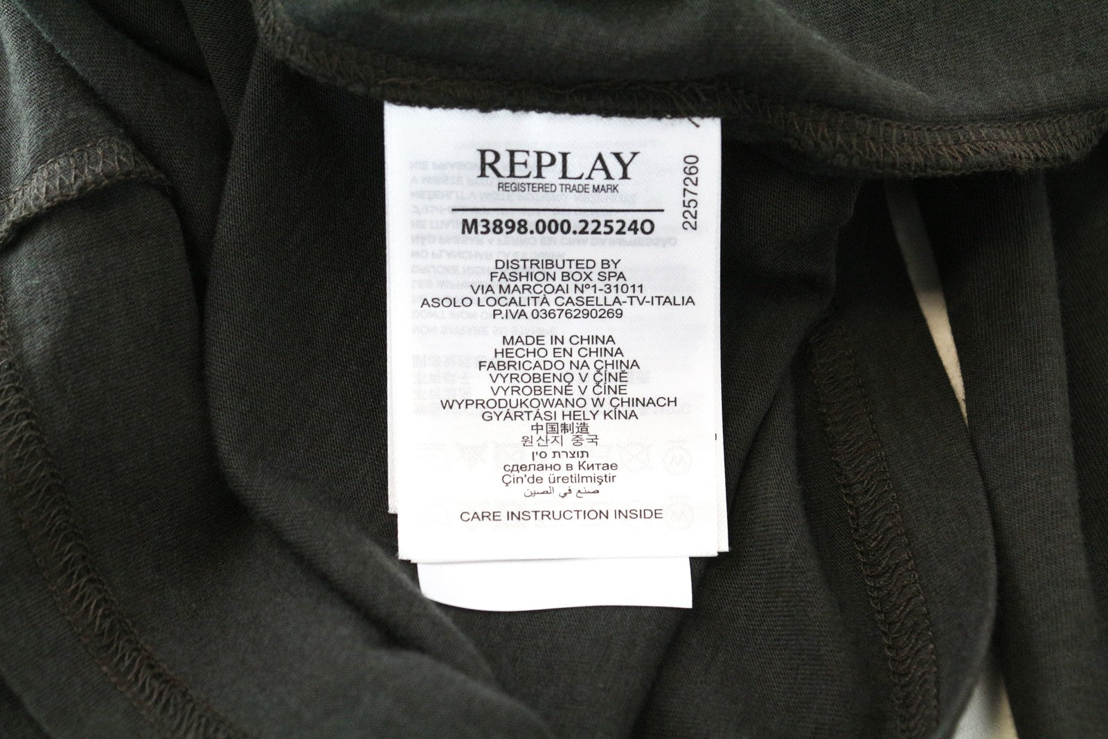 REPLAY vyriški marškinėliai pilkšvai rudi S dydžio medvilnės mišinio ilgomis rankovėmis su kišenėmis