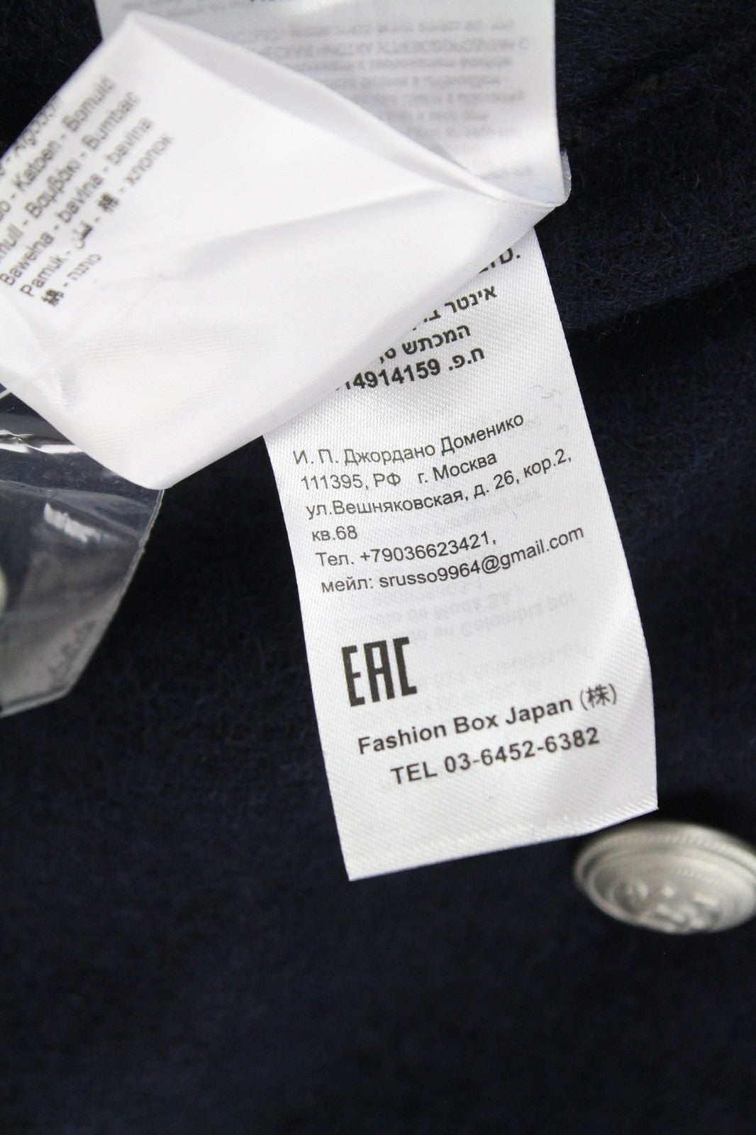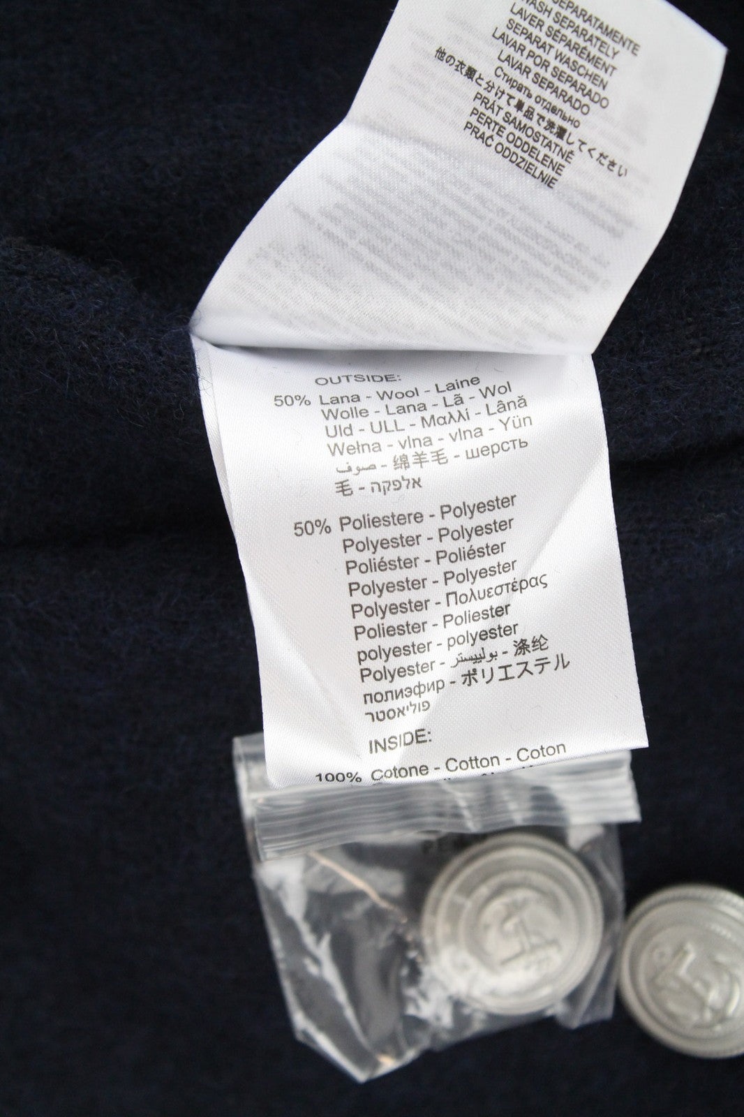 REPLAY Men's XL Coat Navy Blue Wool Blend Classic Double-Breasted Notch Cut