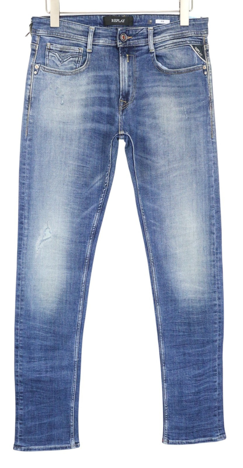 REPLAY Rob vyriški džinsai W30/L34 vidutinio mėlynumo, siaurėjantys, tamprūs, tiesaus kirpimo, su užtrauktuku