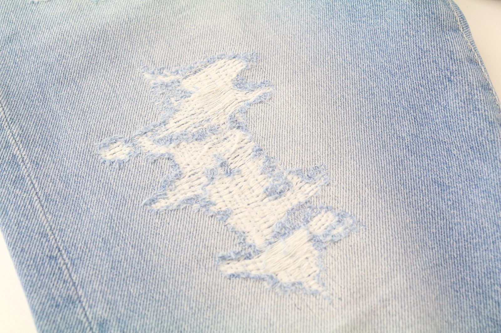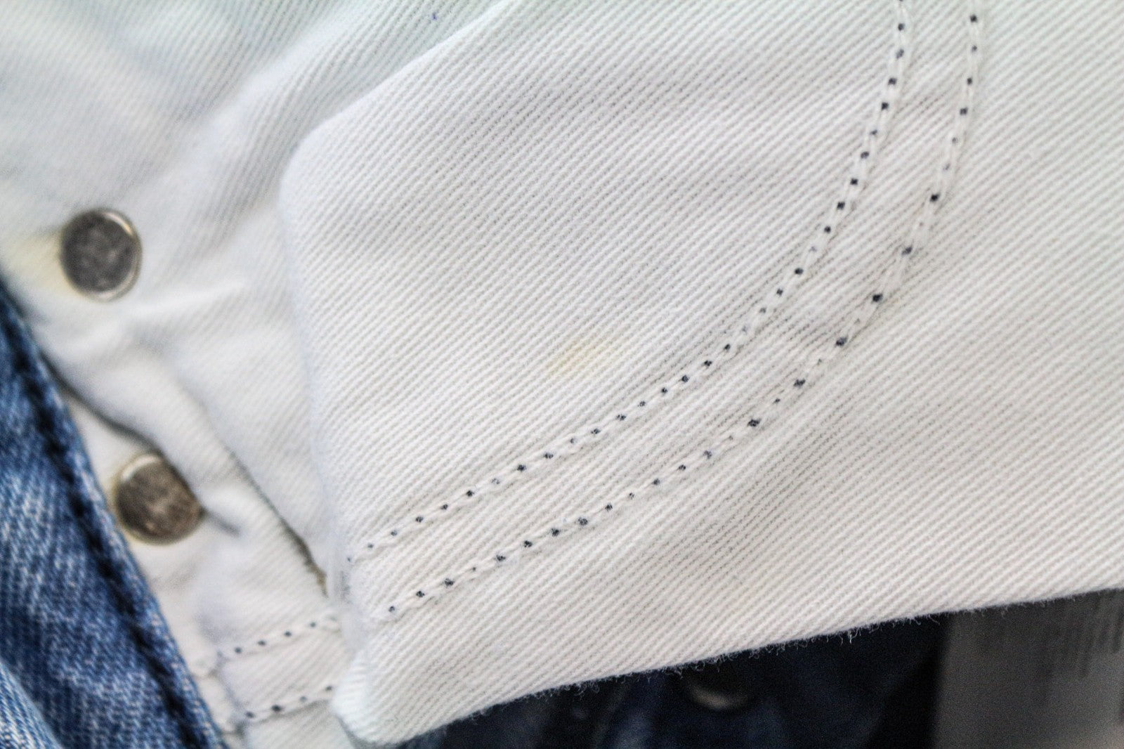 New with defects. Stains inside the pocket's lining and on the right hem. Please see added photos.