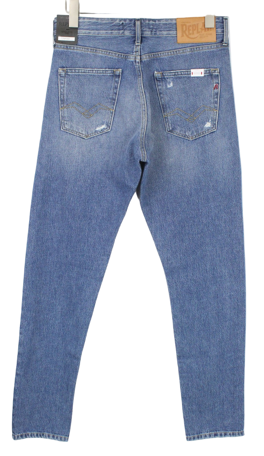 REPLAY Tinmar vyriški W30/L30 mėlyni siaurėjantys grynos medvilnės džinsai