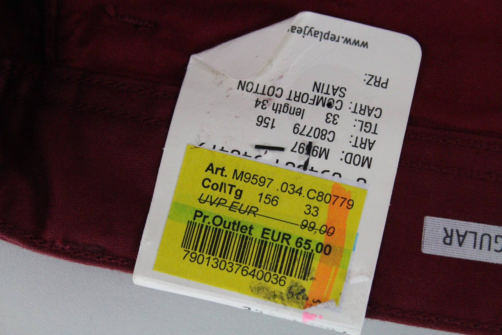 REPLAY Tom Men Trousers W33/L34 Red Cotton Stretch Straight Leg Casual Chinos