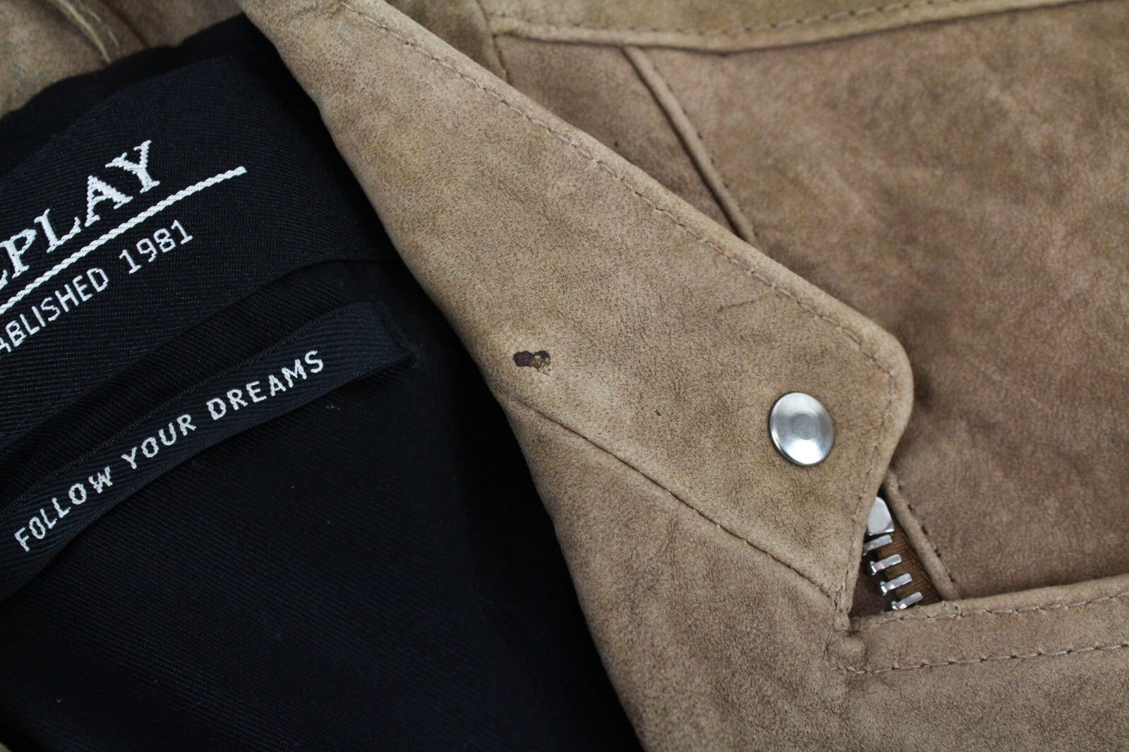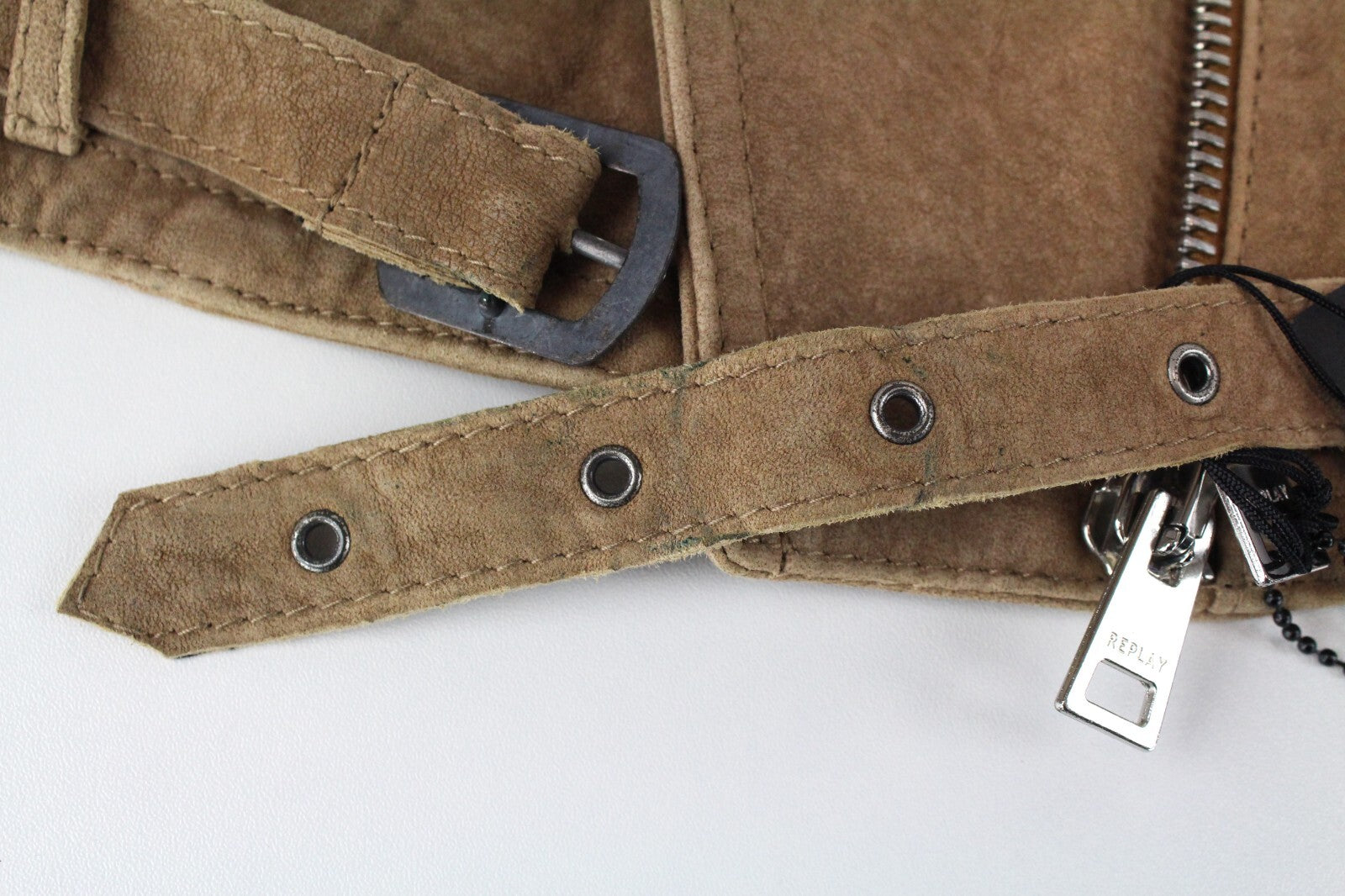 REPLAY moteriška ruda zomšinė avikailio striukė XS ilgomis rankovėmis su užtrauktuku ir pamušalu