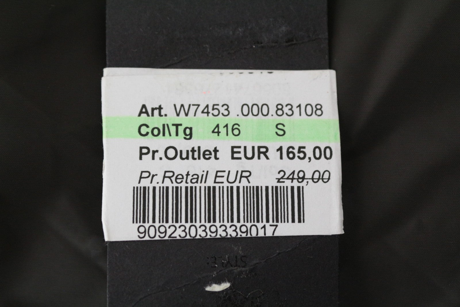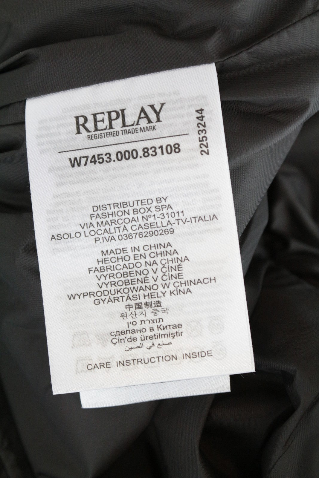 REPLAY moteriškas rudas vidutinio ilgio dygsniuotas pūkinis paltas su gobtuvu, didelis dydis