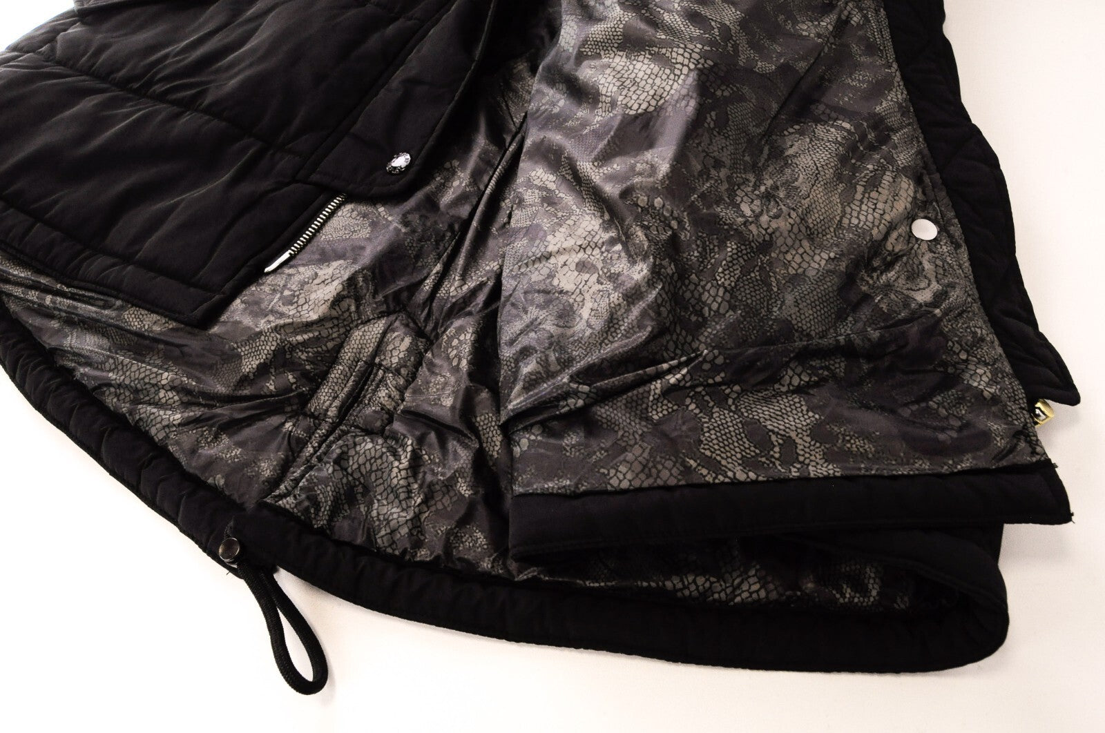 REPLAY moteriška striukė L su dirbtiniu kailiu, gobtuvu, juoda, pūsta parka ilgomis rankovėmis