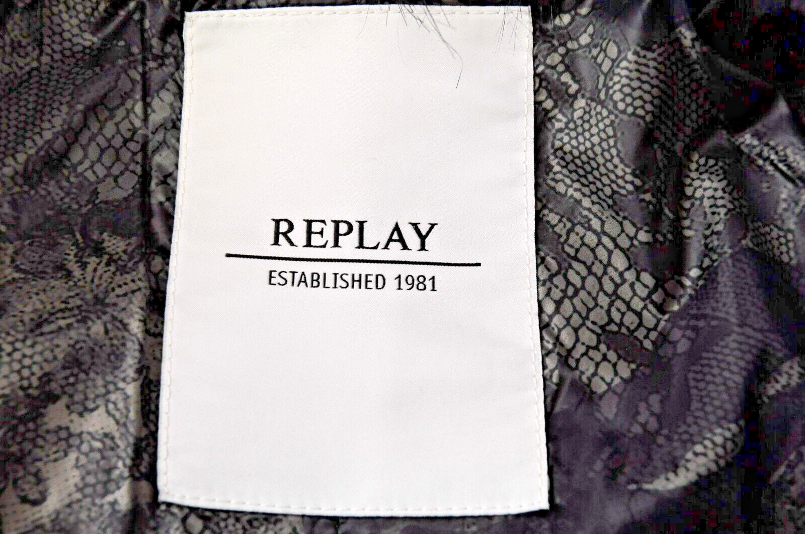 REPLAY moteriška striukė M, juoda, su dirbtinio kailio pamušalu, gobtuvu, paminkštinta parka ilgomis rankovėmis