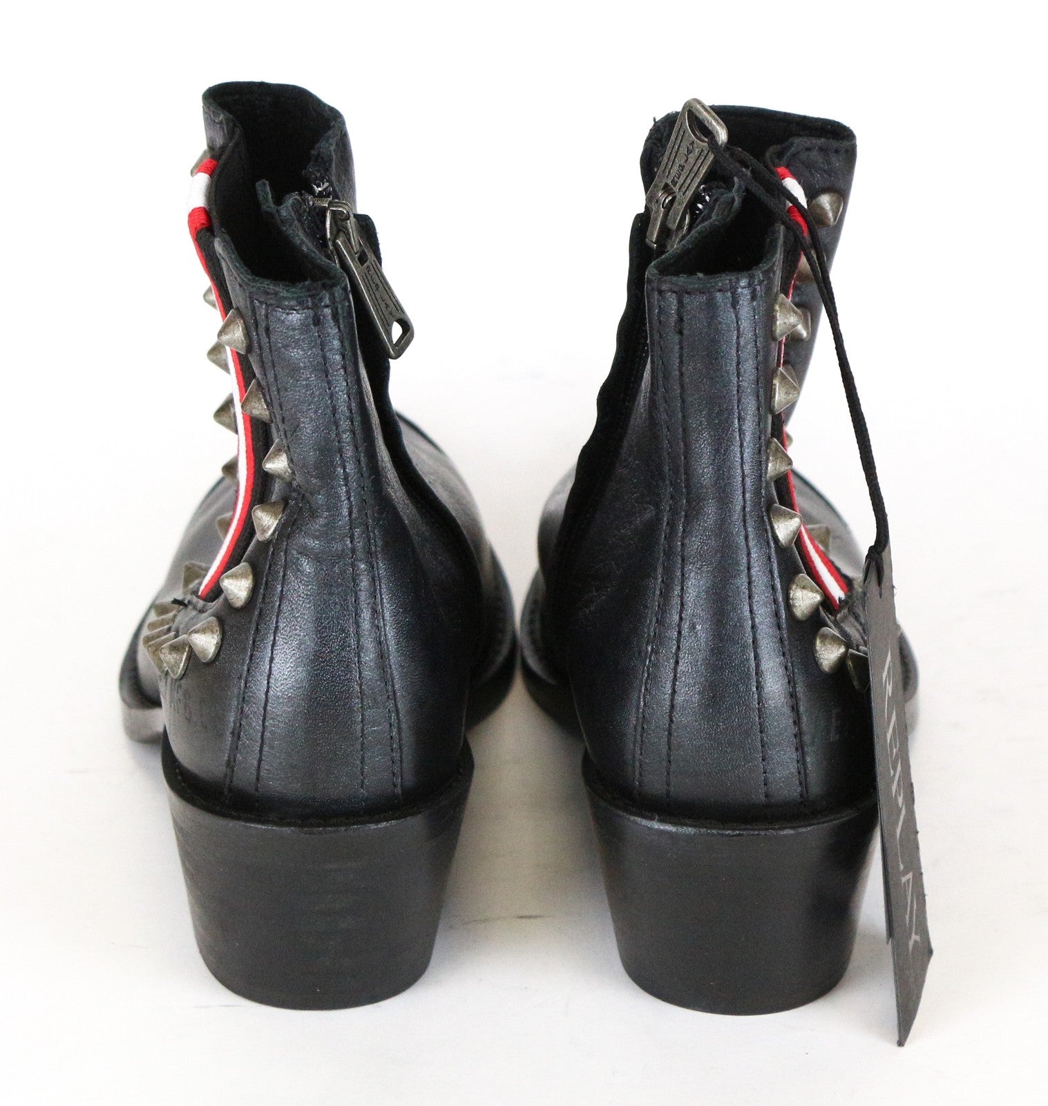 REPLAY moteriški batai, 36 dydis, juodi, dygliuoti, smailūs aulinukai iki kulkšnių, rekomenduojama kaina – 230 €