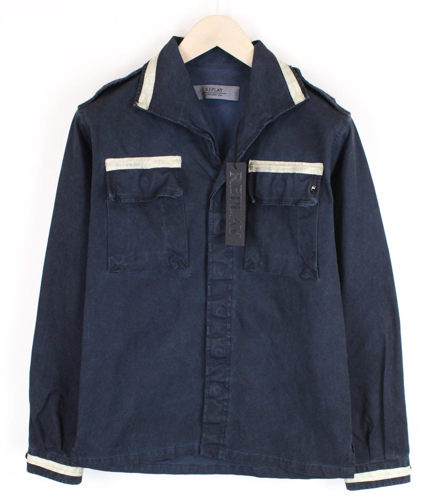 REPLAY darbininko stiliaus moteriškas švarkas M tamsiai mėlynas trumpas marškinėliai su lopais kišenėse