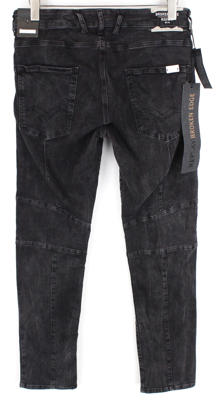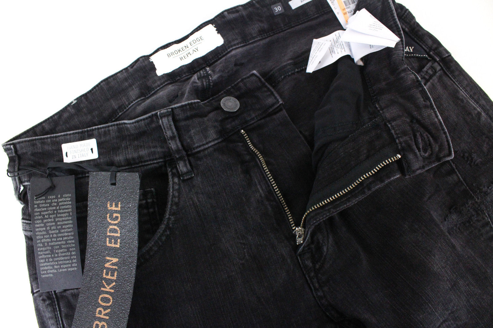 REPLAY Zaldok vyriški pilki aptempti džinsai W30/L30 medvilniniai tamprūs plėšyti džinsai