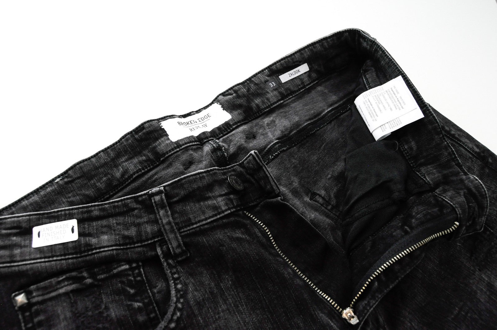 REPLAY Zaldok vyriški džinsai W33/L30 pilki, dirbtinai sendinti, prigludę, tamprūs medvilniniai džinsai