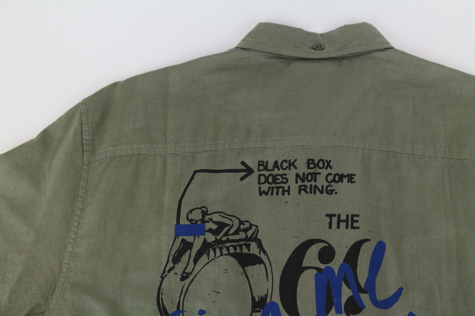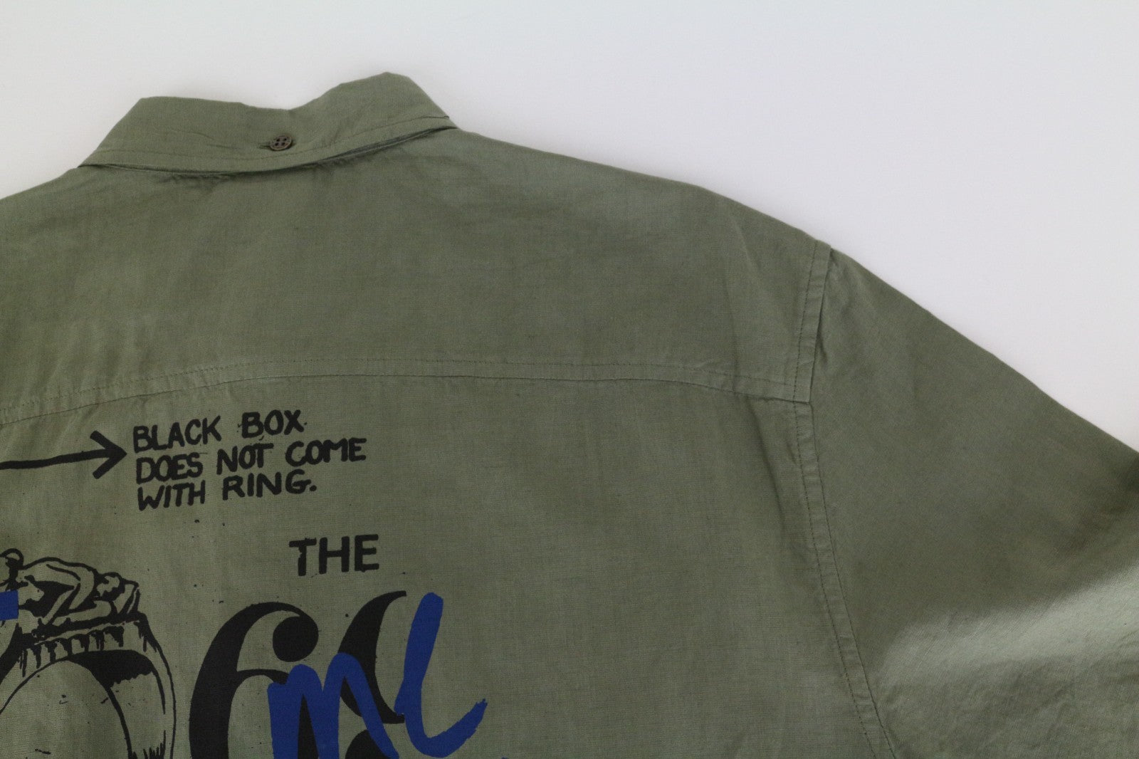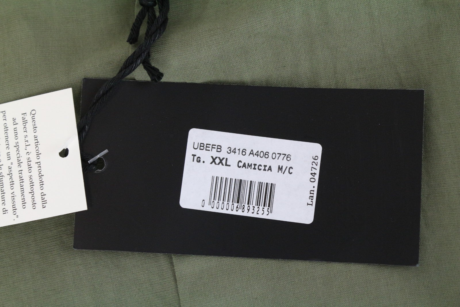 RICHMOND Men Shirt 2XL Green Cotton Linen Short Sleeved Back Logo Button-Up