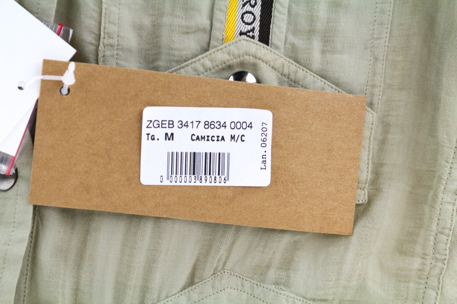 RICHMOND  Men Shirt M Green Pure Cotton Striped Snaps Short Sleeved Pocketed