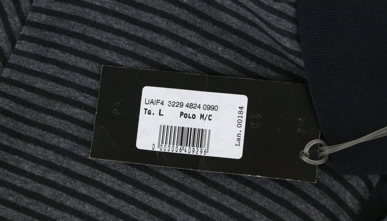 RICHMOND  Men T-Shirt L Grey Pure Cotton Striped Short Sleeved Pins Polo
