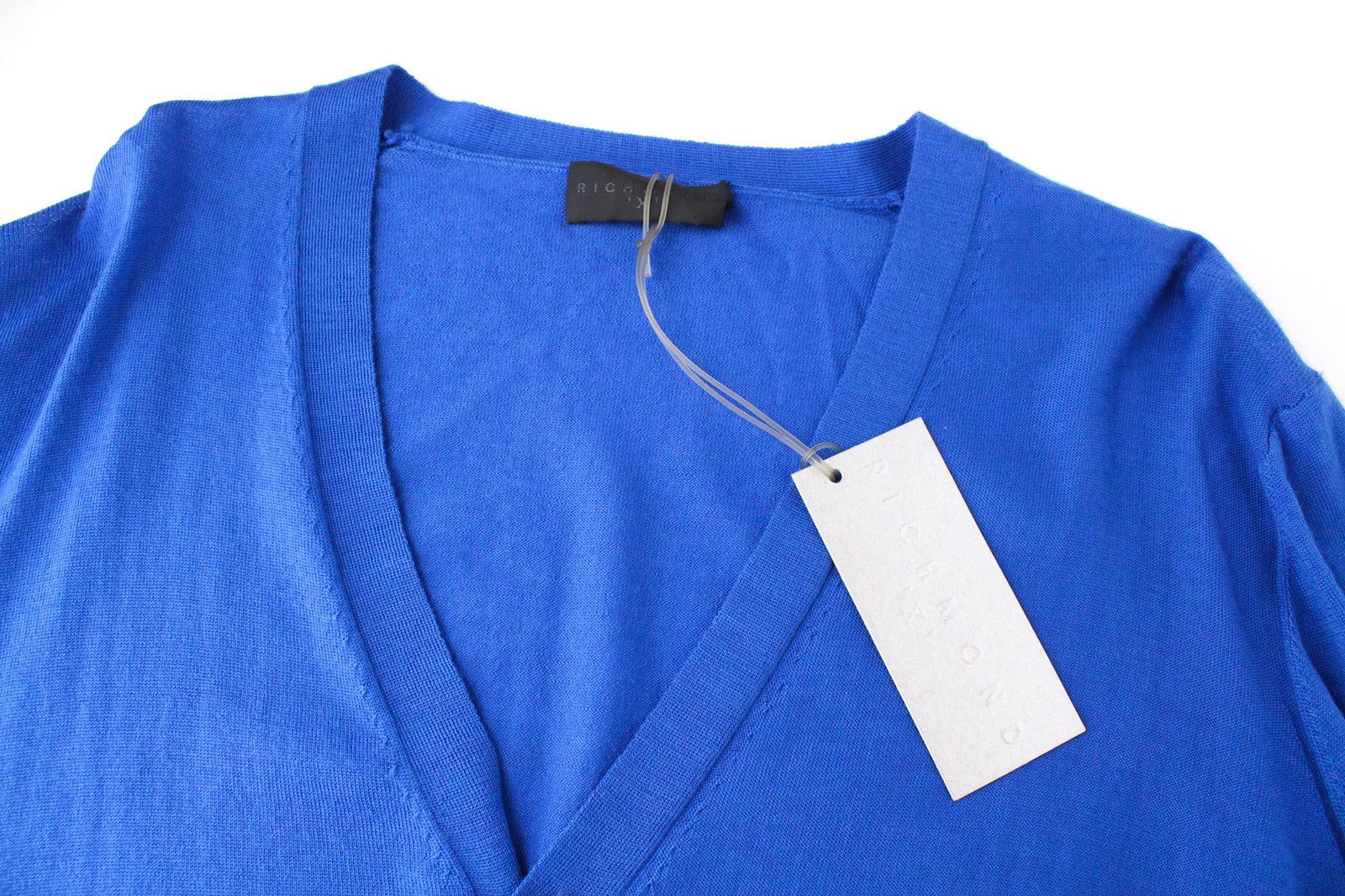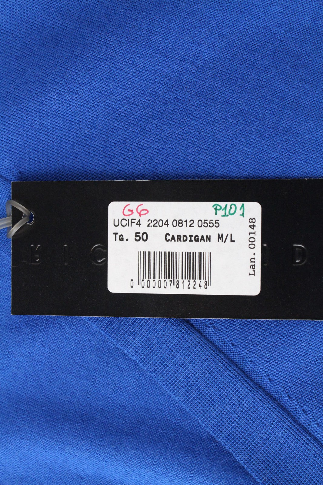 RICHMOND vyriškas kardiganas IT50 mėlynas aptemptas megztinis iš grynos vilnos, tampriai megztas