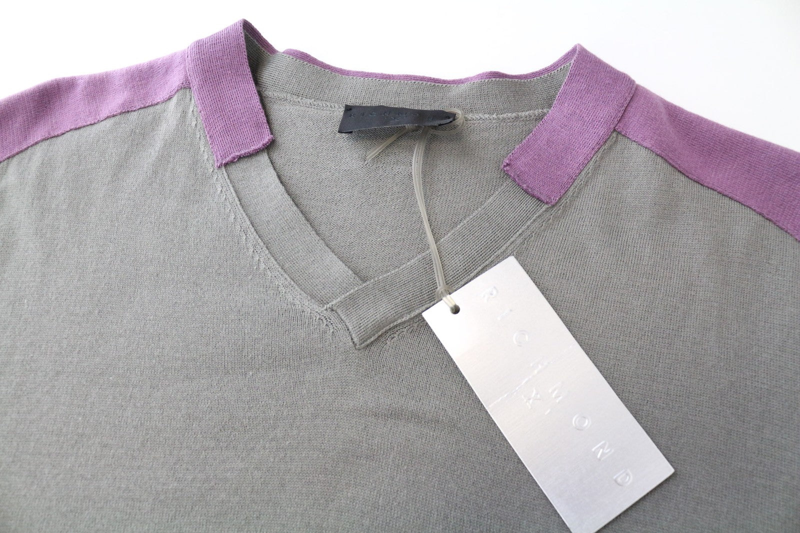 RICHMOND vyriškas megztinis IT50 pilkas, V formos iškirpte, tvirtai megztas, grynos medvilnės megztinis su lopais