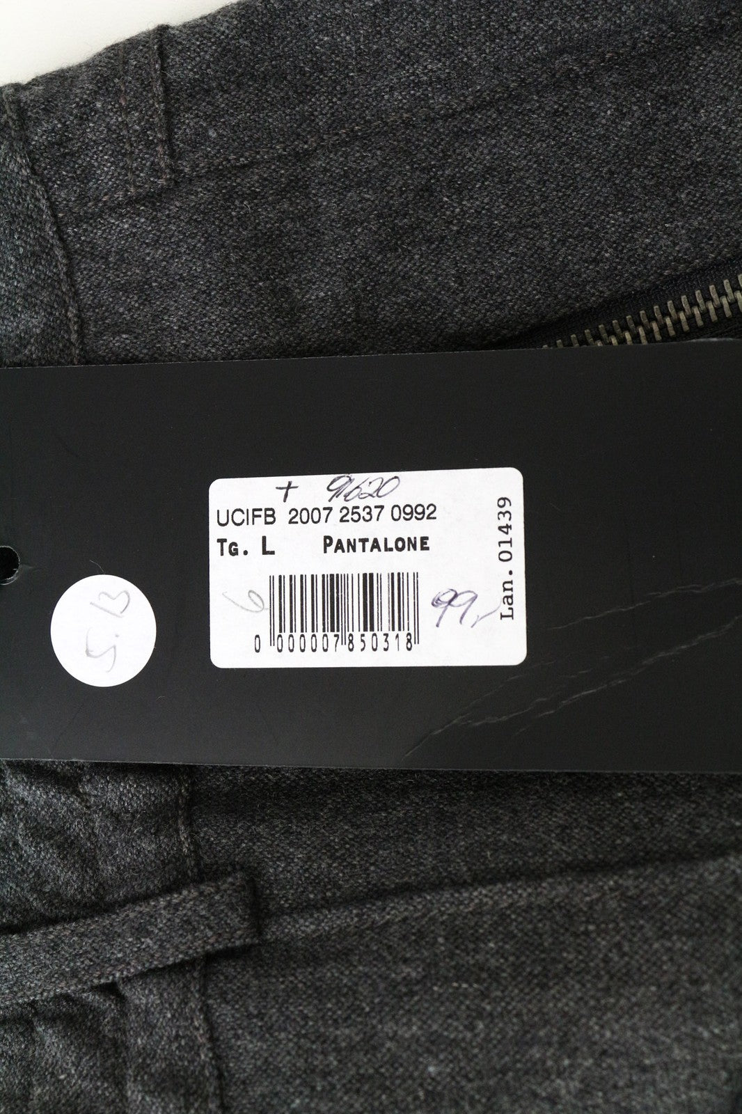 RICHMOND Men's Pants L Grey Melange Wool Blend Stretch Drawstring Waist