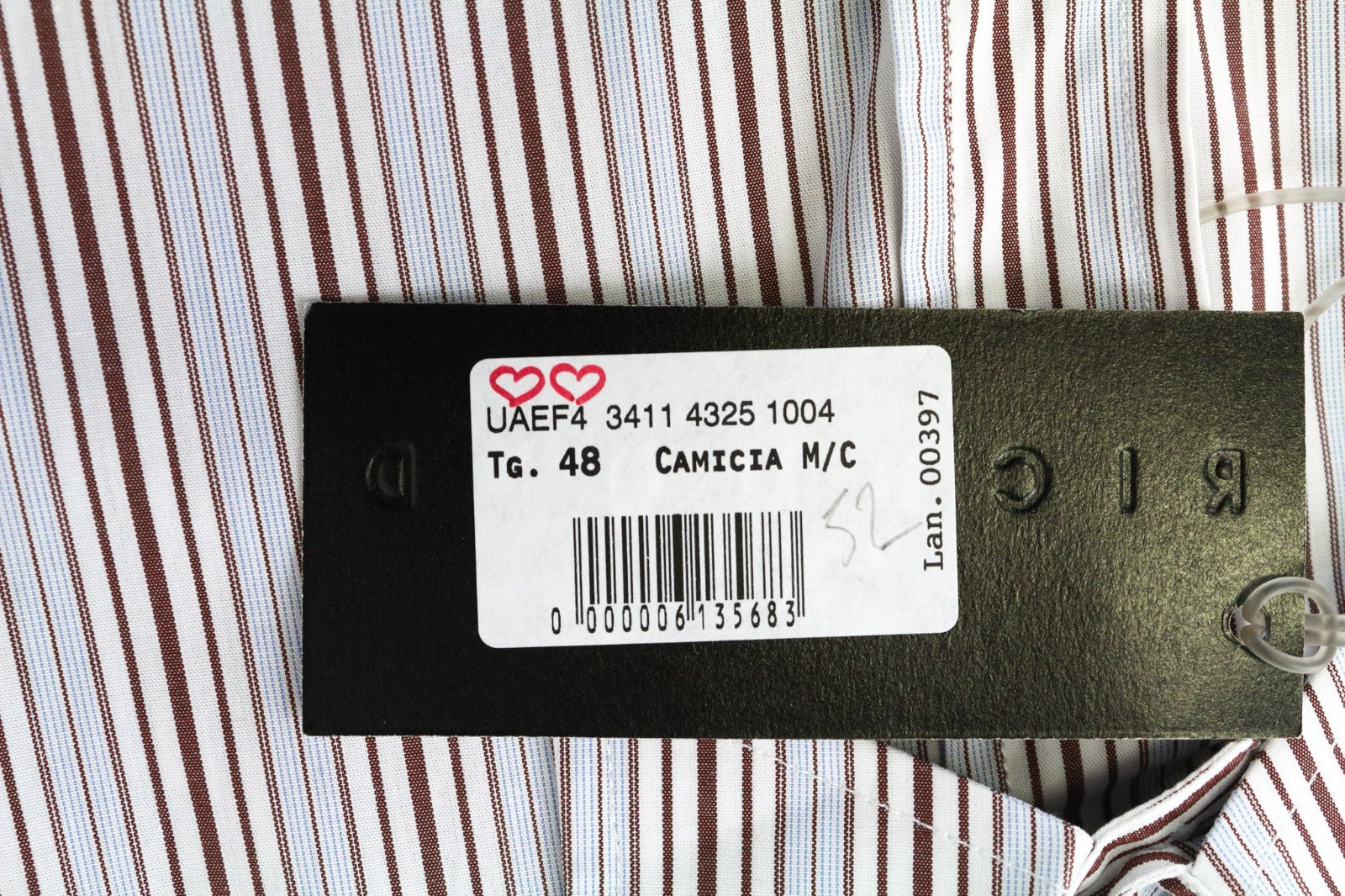 RICHMOND vyriški marškiniai 48 balti medvilniniai dryžuoti trumpomis rankovėmis su sagomis