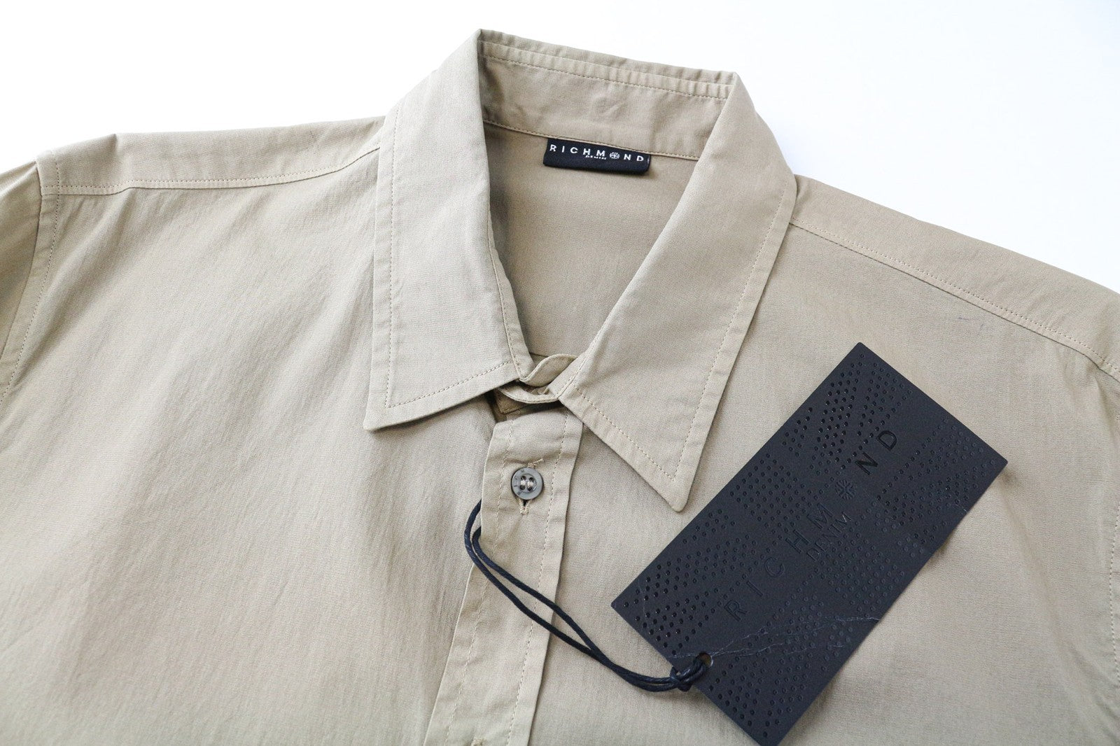 RICHMOND vyriški marškinėliai šviesiai rudi, tamprūs medvilniniai, ilgomis rankovėmis, su sagomis, L dydžio