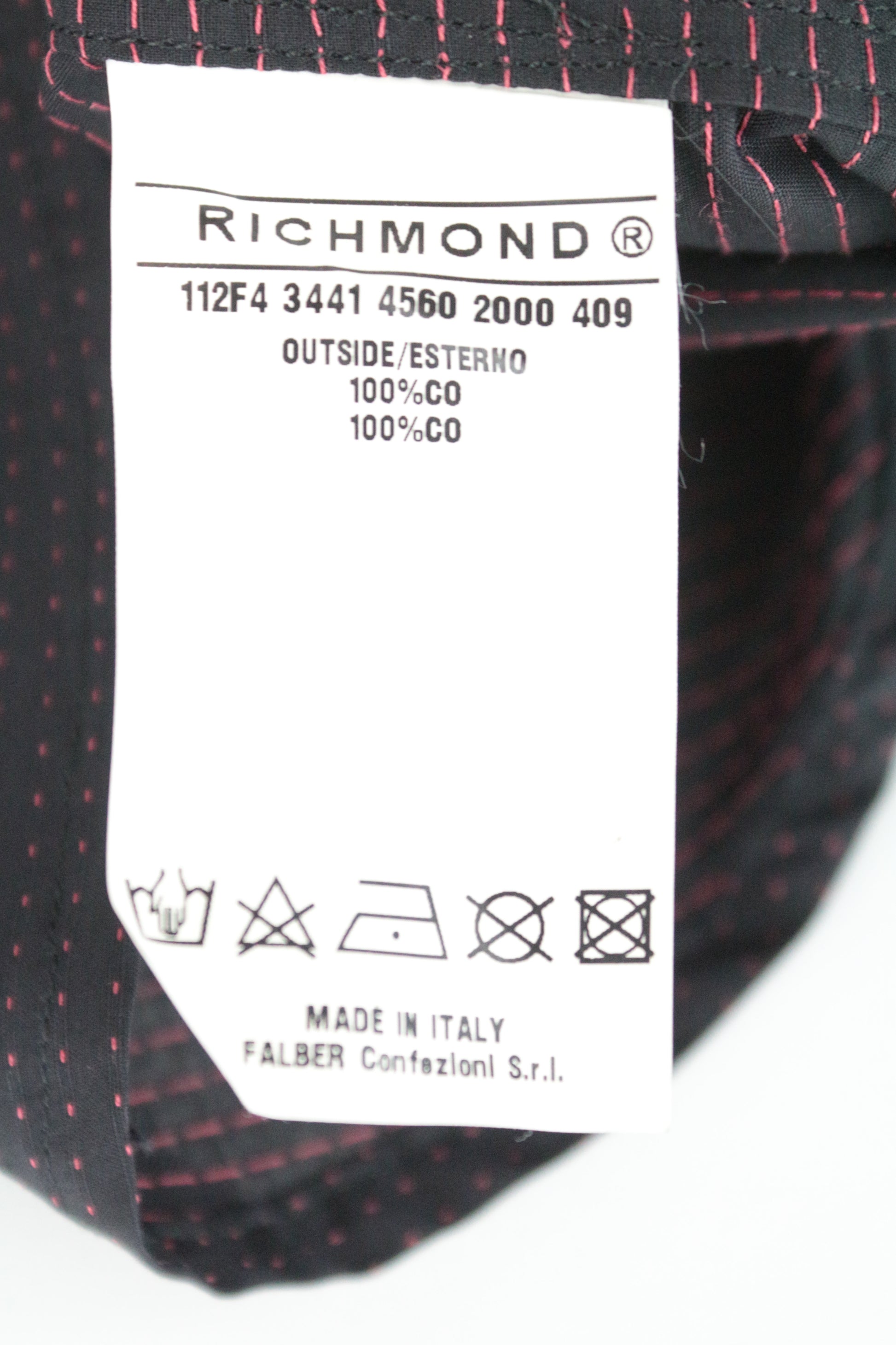 RICHMOND vyriški marškiniai M/L dydžio, tamsiai mėlyni, taškuoti, grynos medvilnės ilgomis rankovėmis, su sagomis