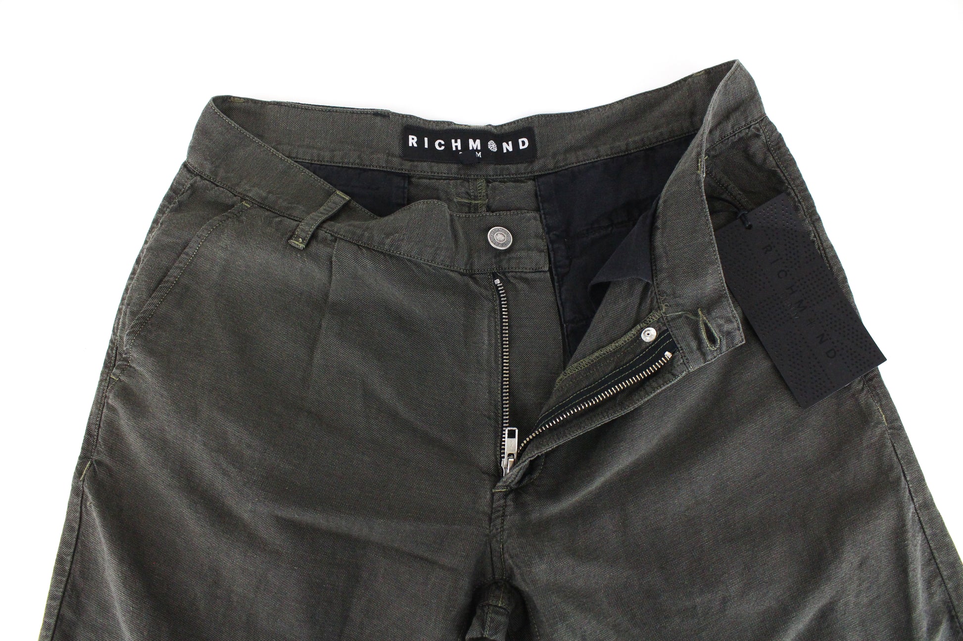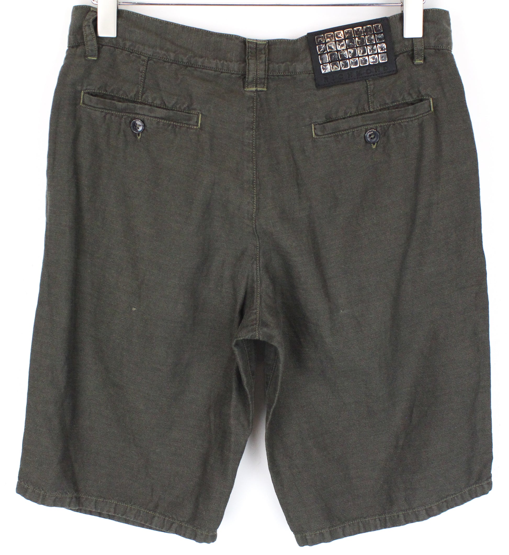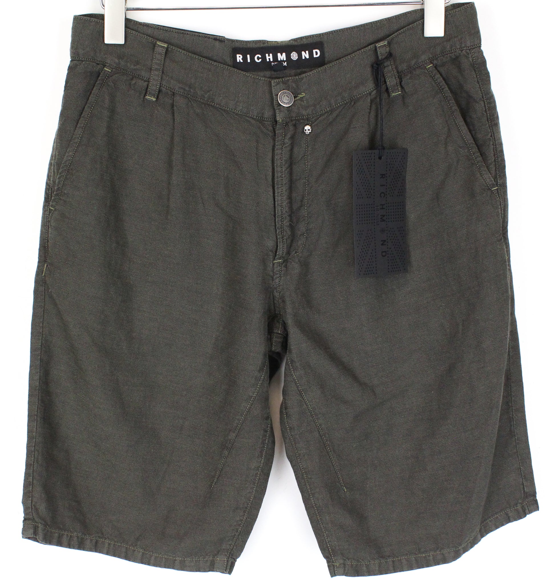 RICHMOND Men's Shorts 48 Green Cotton Linen Summer Casual Flat Front Shorts
