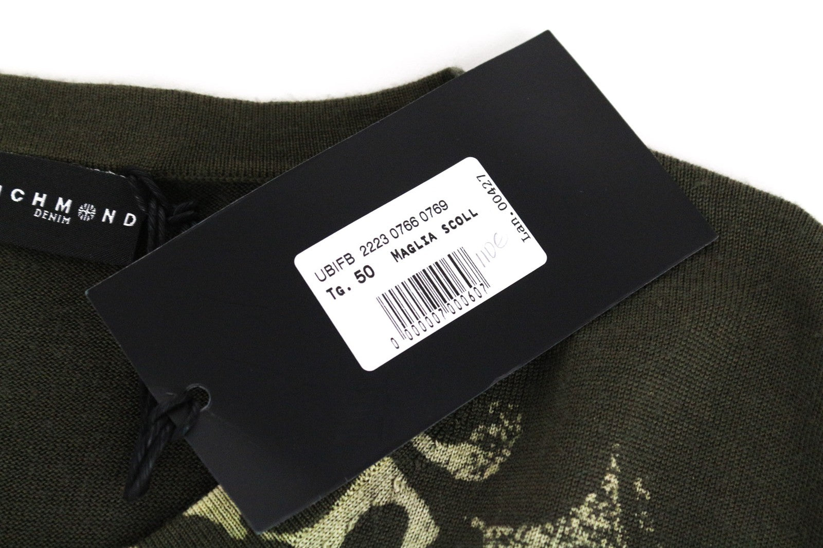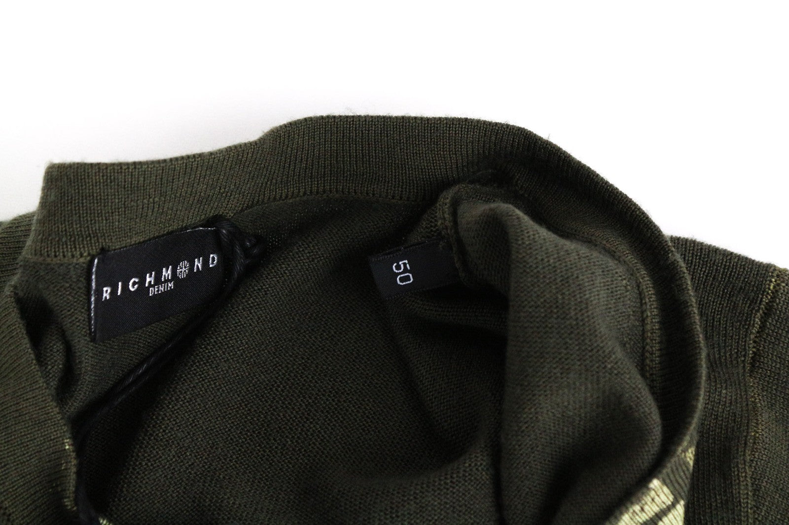 RICHMOND vyriškas 50 dydžio žalias vilnonis megztinis su logotipu ilgomis rankovėmis
